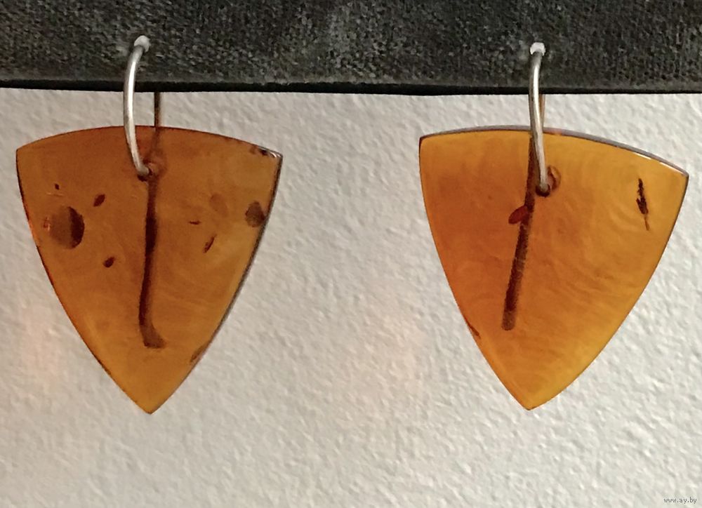 Серьги Калининградского янтарного комбината. Серебро 925пр.(звезда) и янтарь. Высота серьги 3,5см., размер янтарной подвески 2,5х2,7х2,7см. Состояние хорошее.