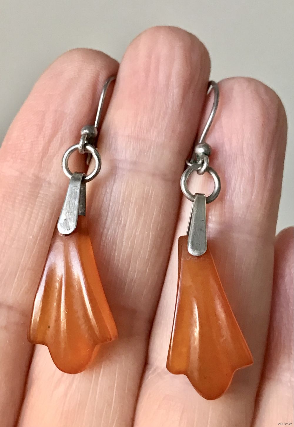 Серьги с основой из серебра 875пр. и подвесок из янтаря. Сделаны в Калининграде в 1987г. Высота серьги 5см., вес пары 3гр. Состояние хорошее.
