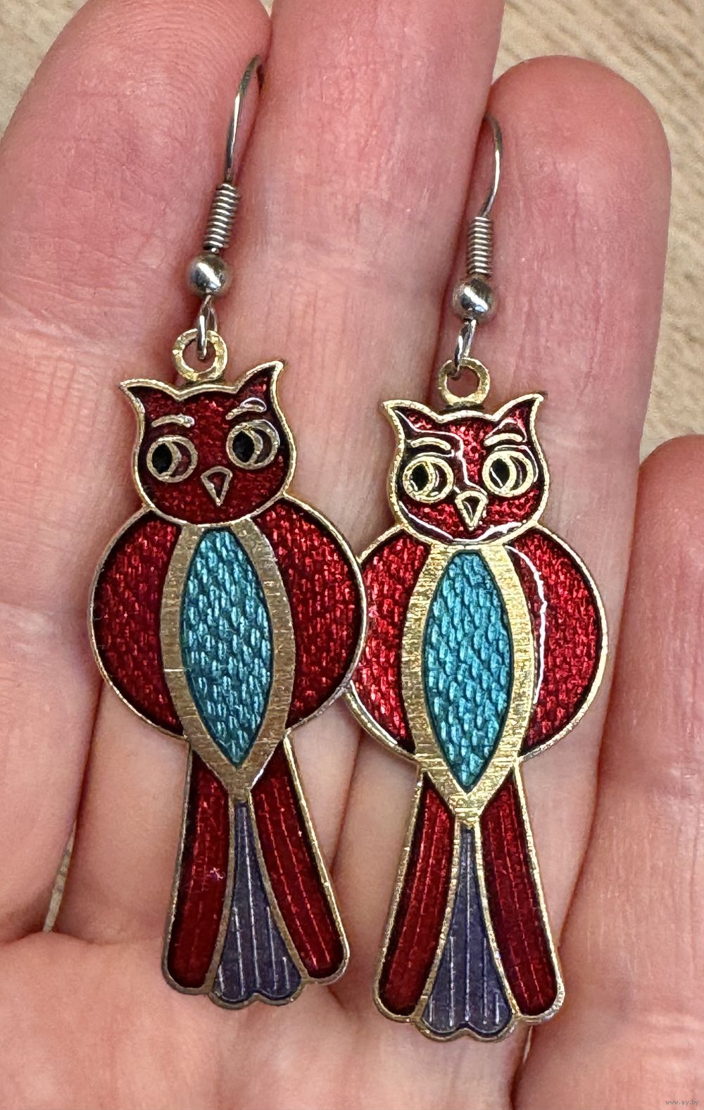 Винтажные серьги известного английского бренда Fish&Crown. Основа из латуни, лицевая сторона украшена яркими эмалями. Высота серьги 6,2см. Состояние хорошее.