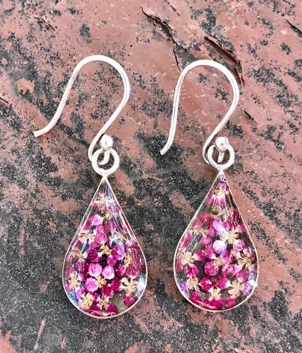 Винтажные серьги из серебра 925 пр. Вставки из цветов в юв.смоле. Серьги изготовлены в Мексике. На каждой стоит отметка ATI 925 Mexico. Высота серьги с петлей 3,8см. Состояние хорошее.