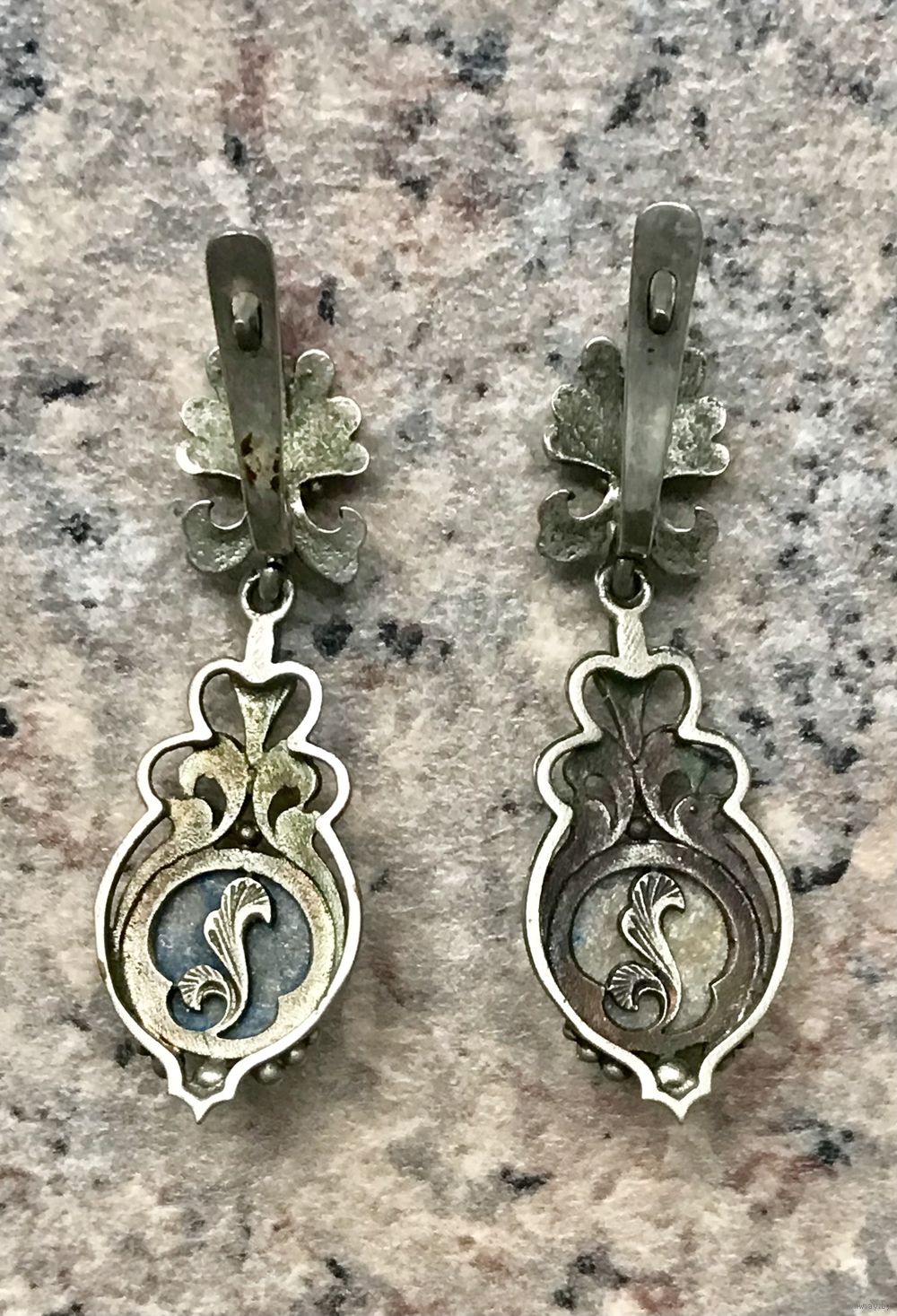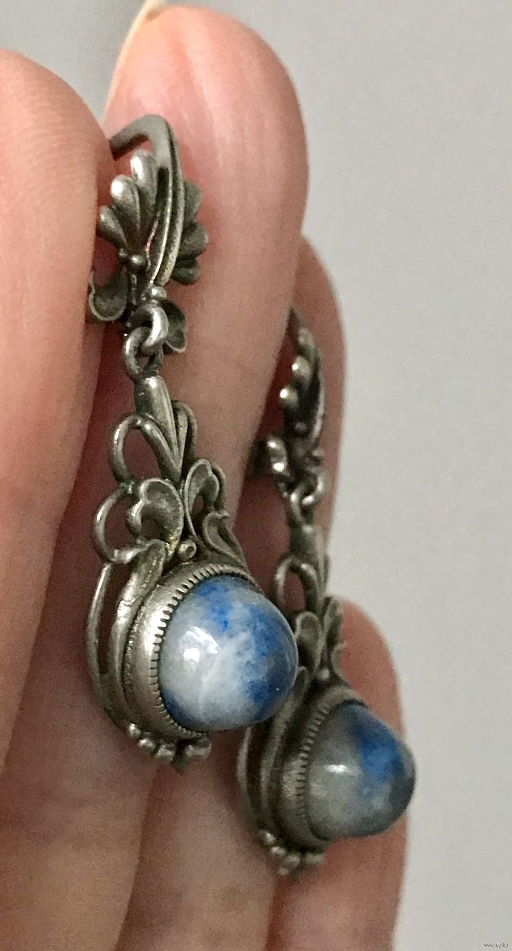 Винтажные серьги из мельхиора и вставок из лазурита? содалита? Высота 4см. Состояние хорошее.