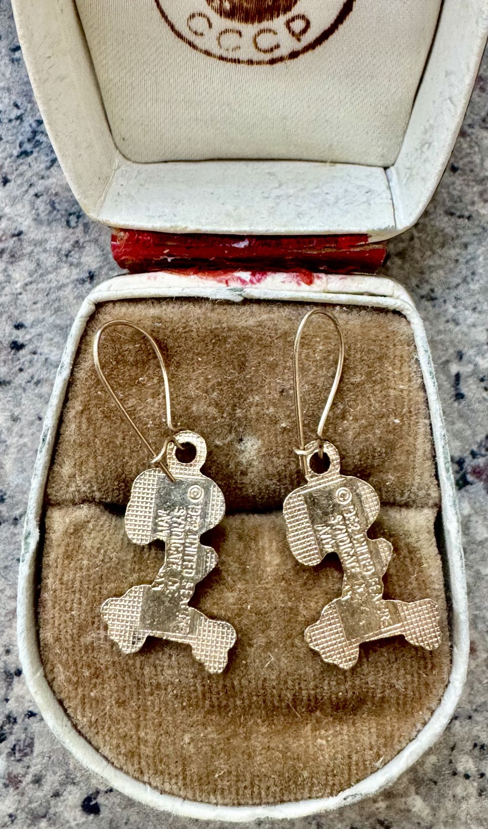 Небольшие винтажные серьги с основой из металла золотистого тона, на лицевой стороне эмаль. Высота серьги 3,2см. Состояние хорошее. Маркированы.