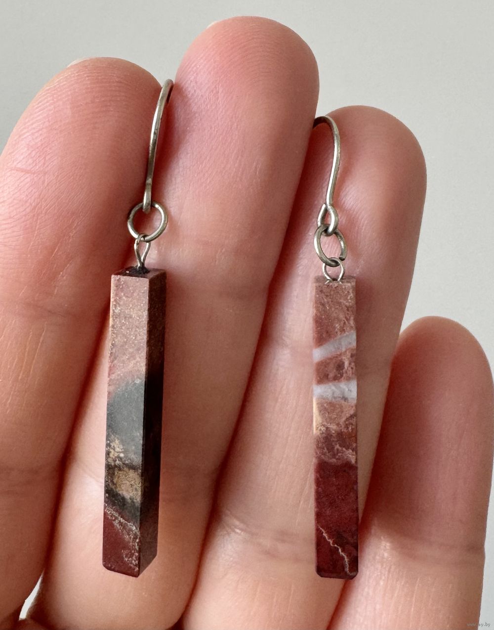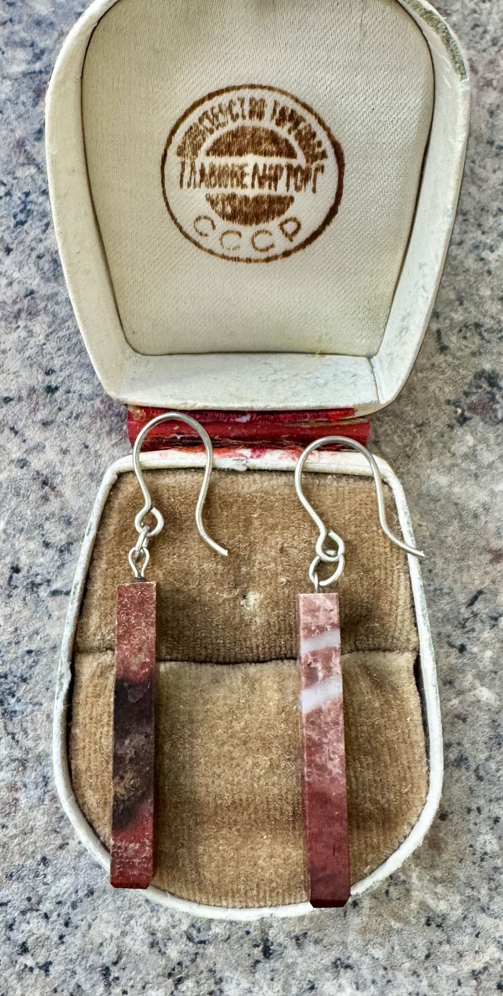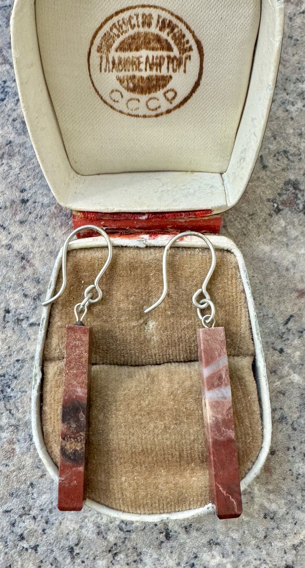 Винтажные серьги с подвесками из камня, крючки сделаны из мельхиора. Высота серьги 4,7см. Состояние хорошее.