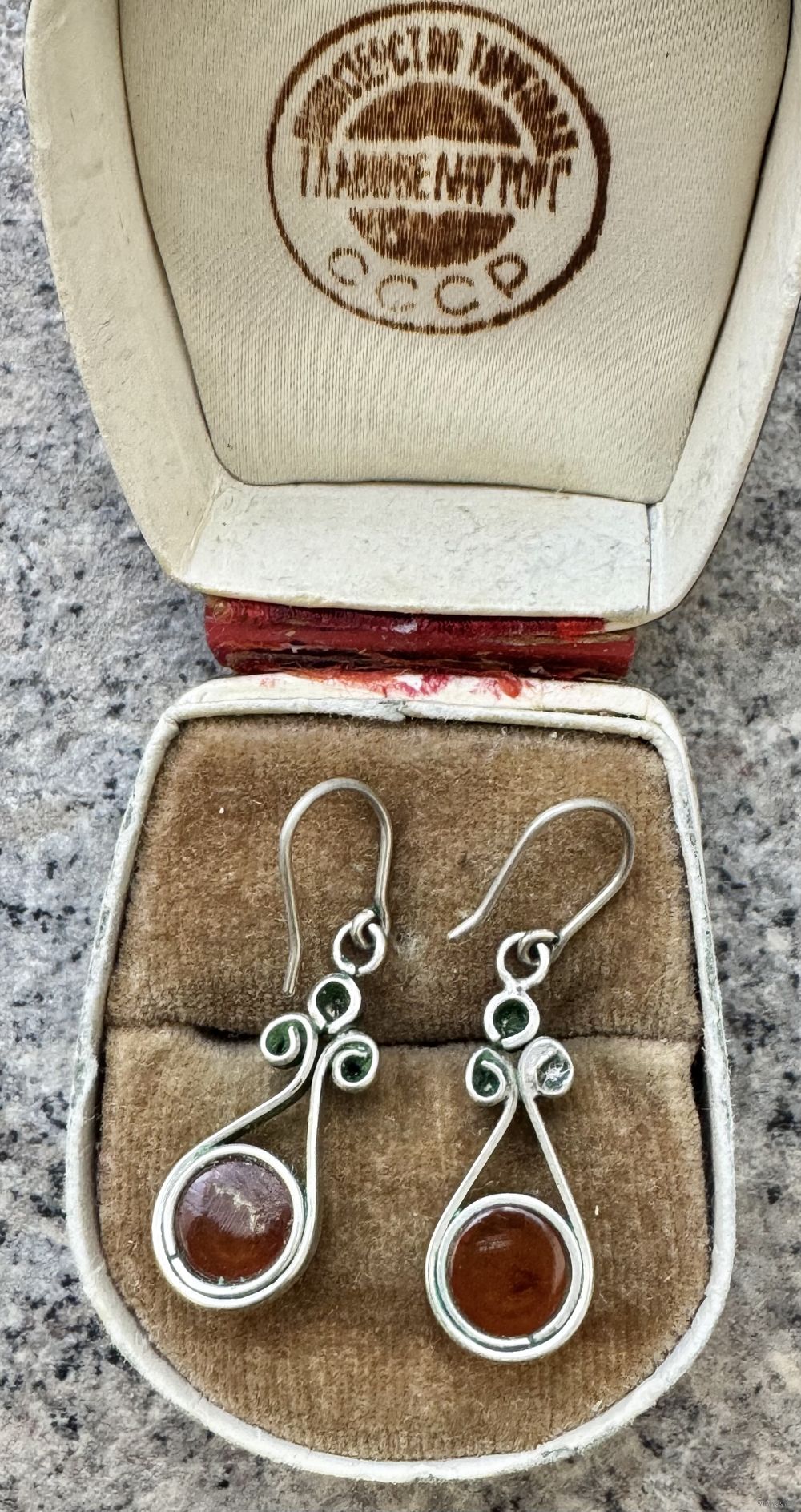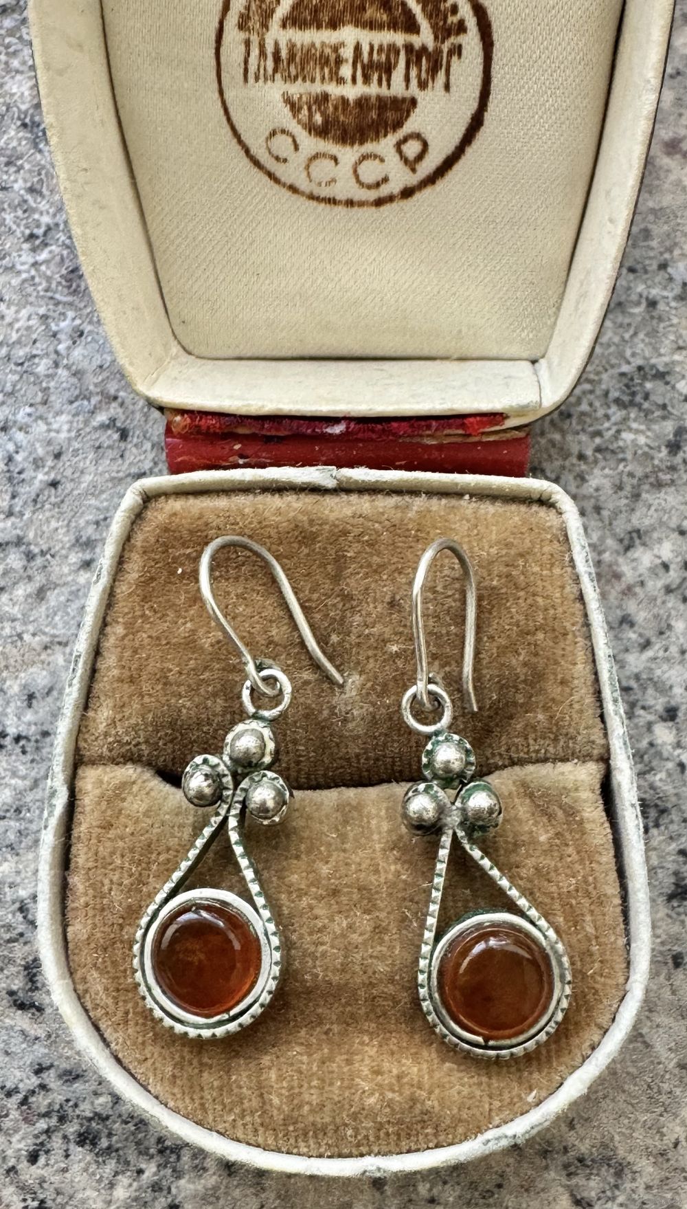 Небольшие винтажные серьги из мельхиора и вставок из янтаря. Высота серьги 3,4см., диаметр вставки 0,7см. Состояние хорошее.
