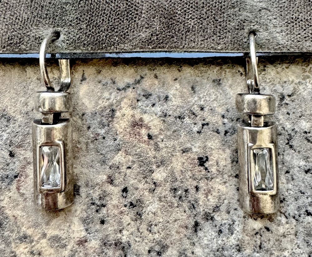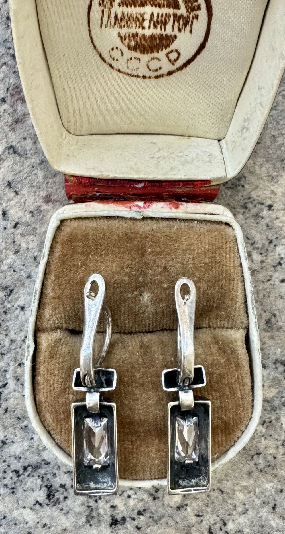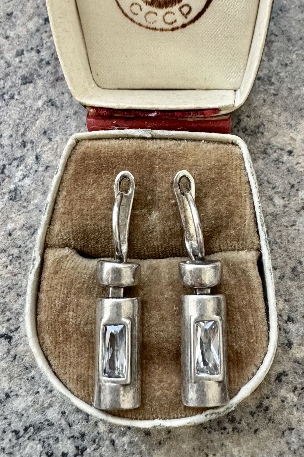 Серьги из металла с глубоким серебрением, вставки кристаллы. Высота 3,2см. Состояние хорошее.