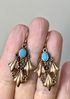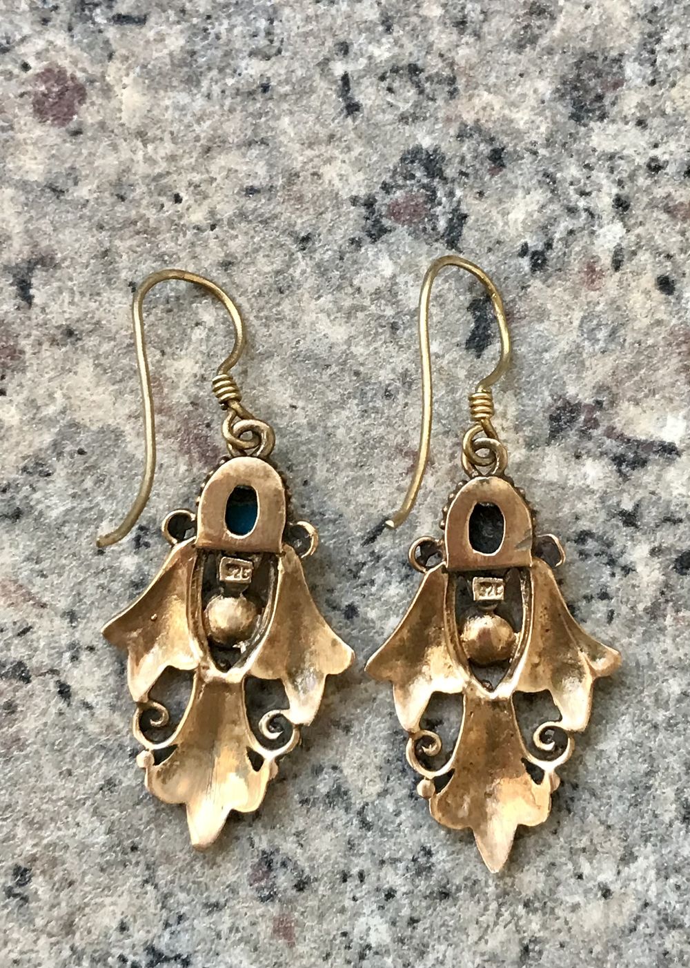 Винтажные серьги из серебра 925пр. с позолотой. Вставка голубого цвета похожа на бирюзу, но может быть и смальта. Высота серьги 4,5см., вес пары 4,55гр. Состояние хорошее.