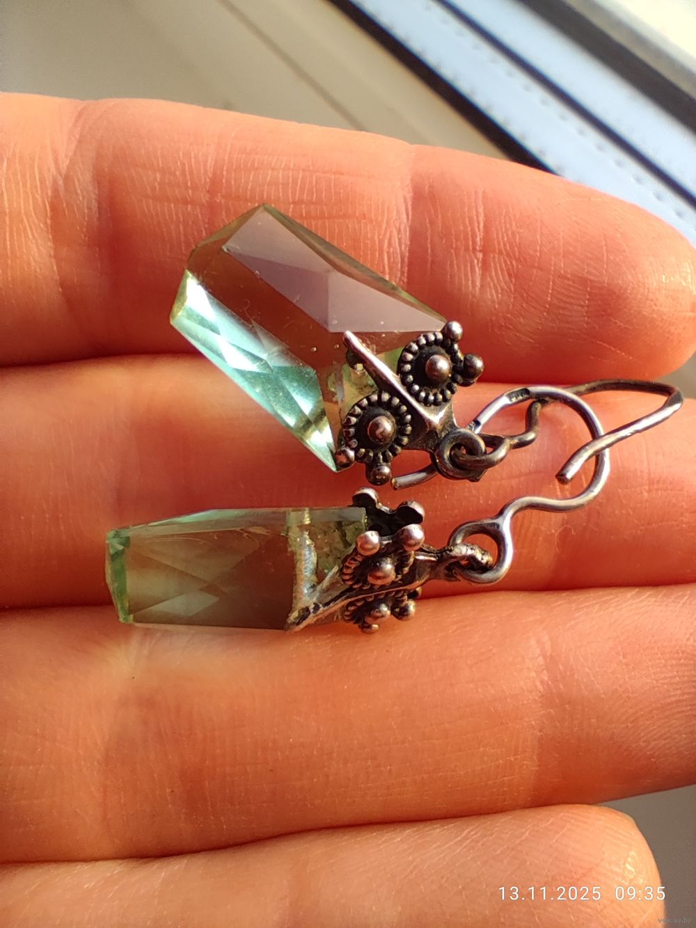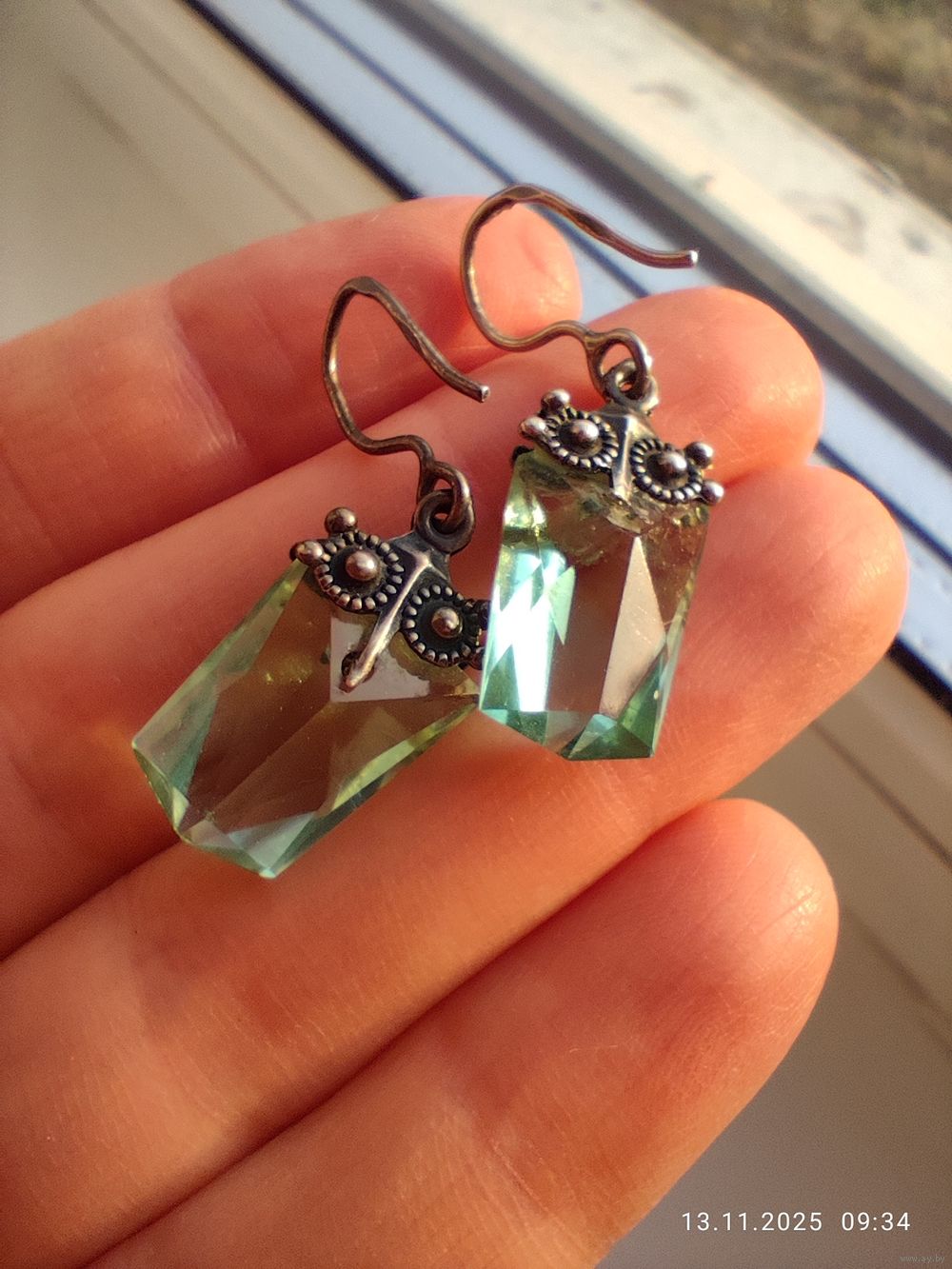Вставки без сколов и трещин. Цвет между зелёным и голубым