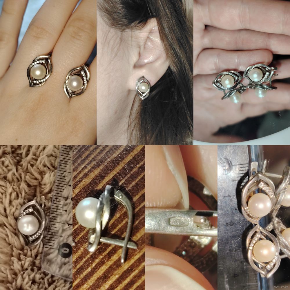 Почти новые серьги из серебра 925 пробы с культивированным жемчугом и фианитами