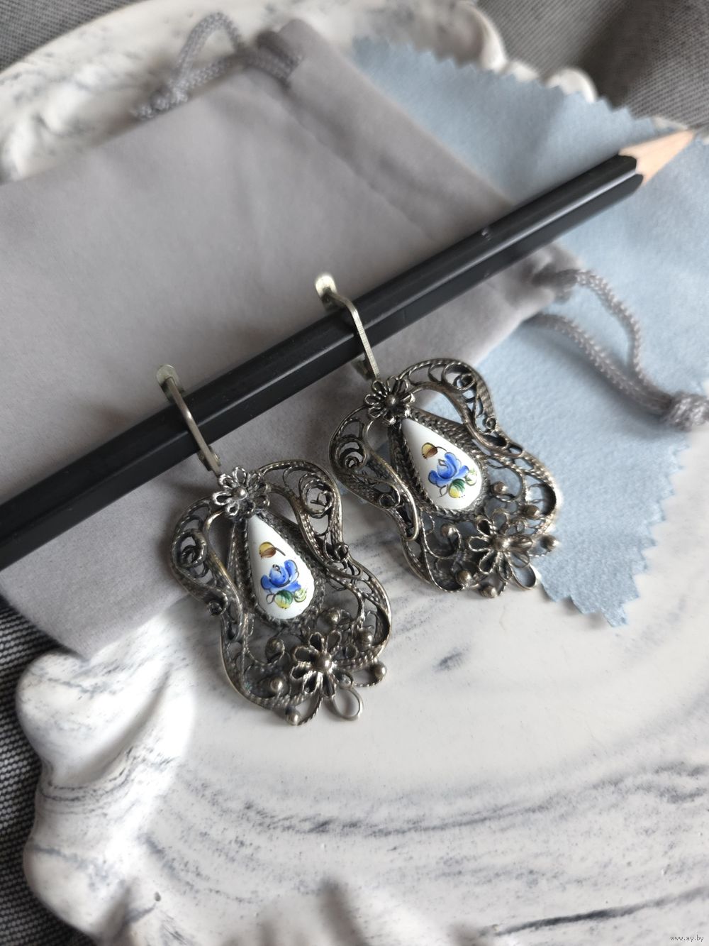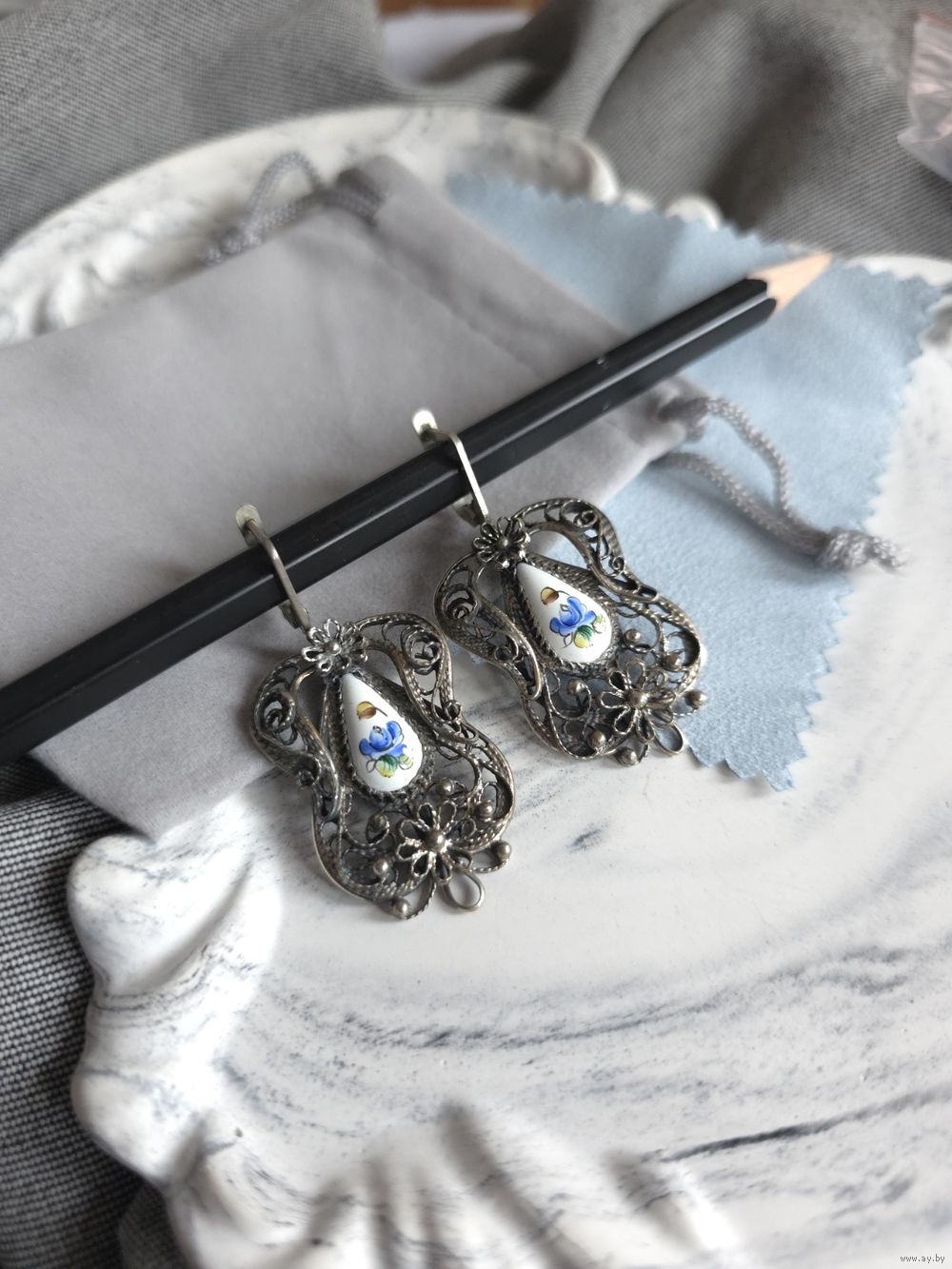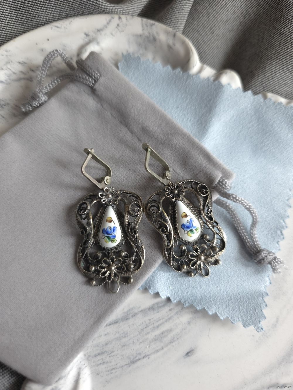 Серьги, ростовская финифть.