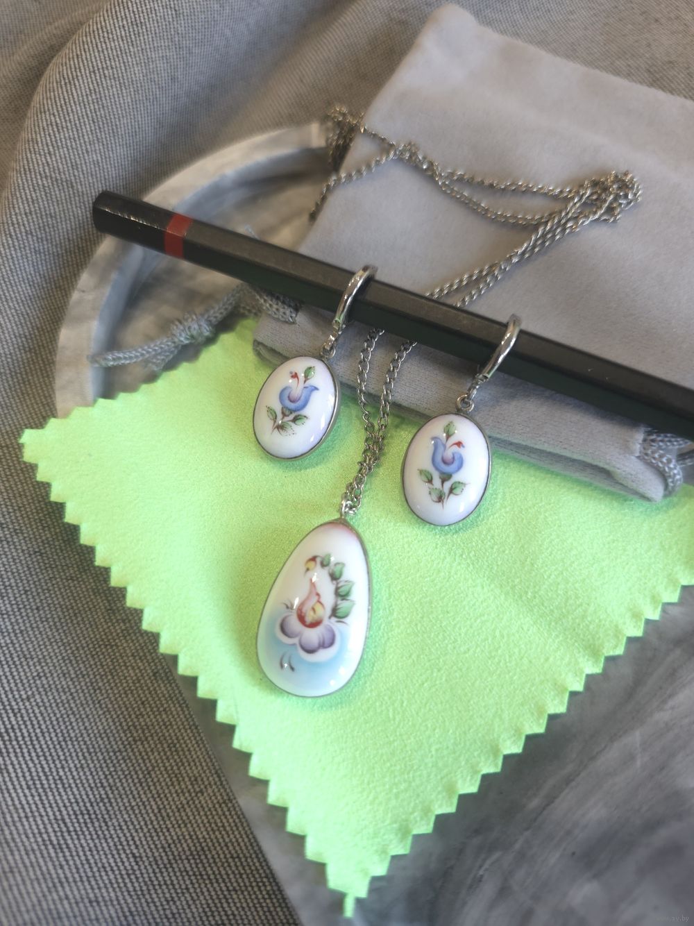 Украшение идет в бархатном мешочке + велюровая тряпочка для чистки.