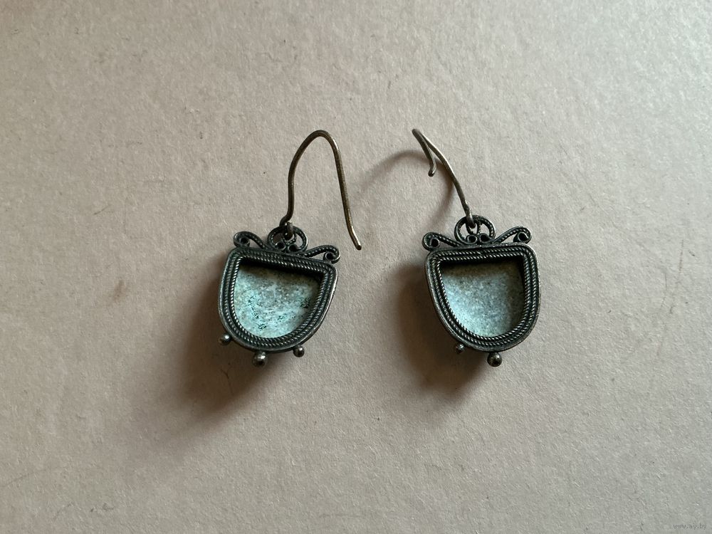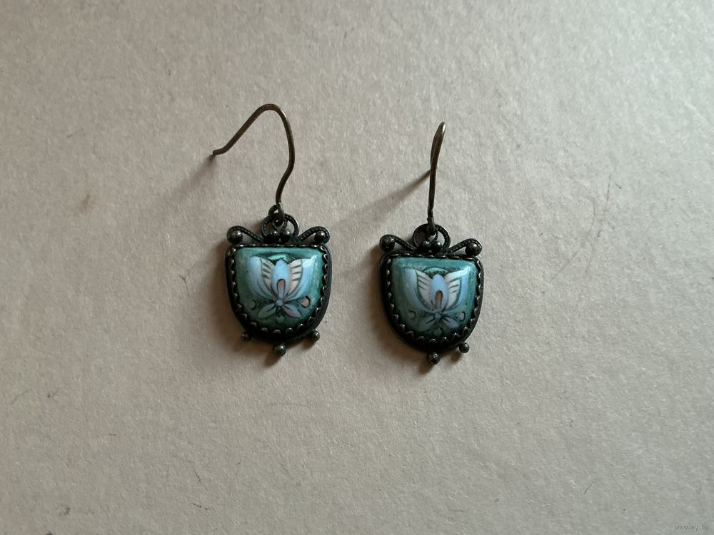 Серьги вставка финифть в голубом цвете , длина со швенгой 4,7 см