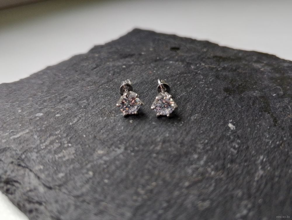 Как новые. Серебро 925 пробы, фианиты диаметр 6 мм.