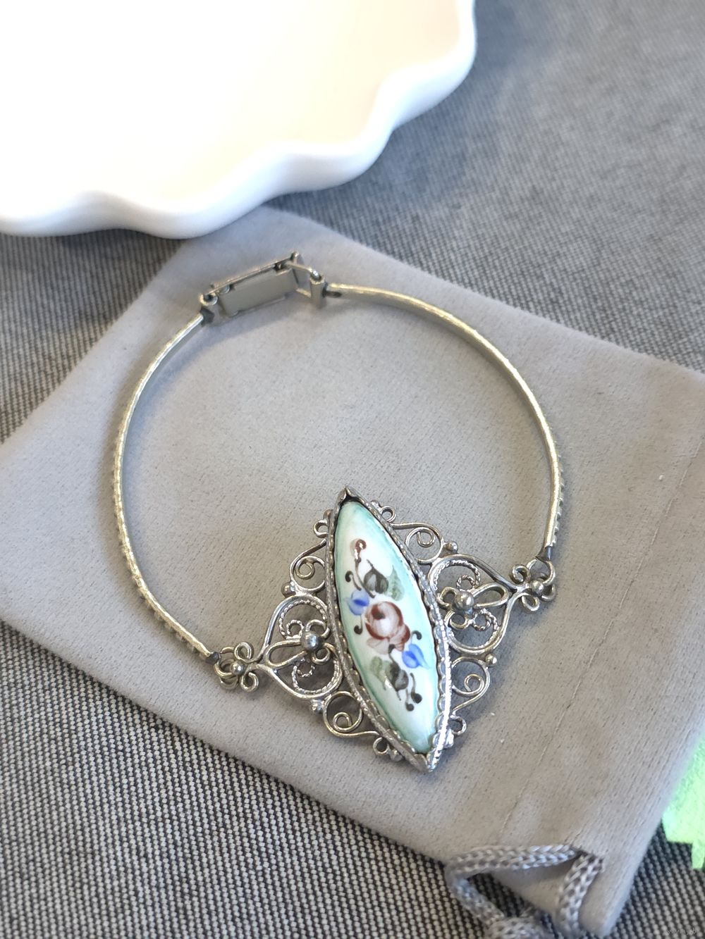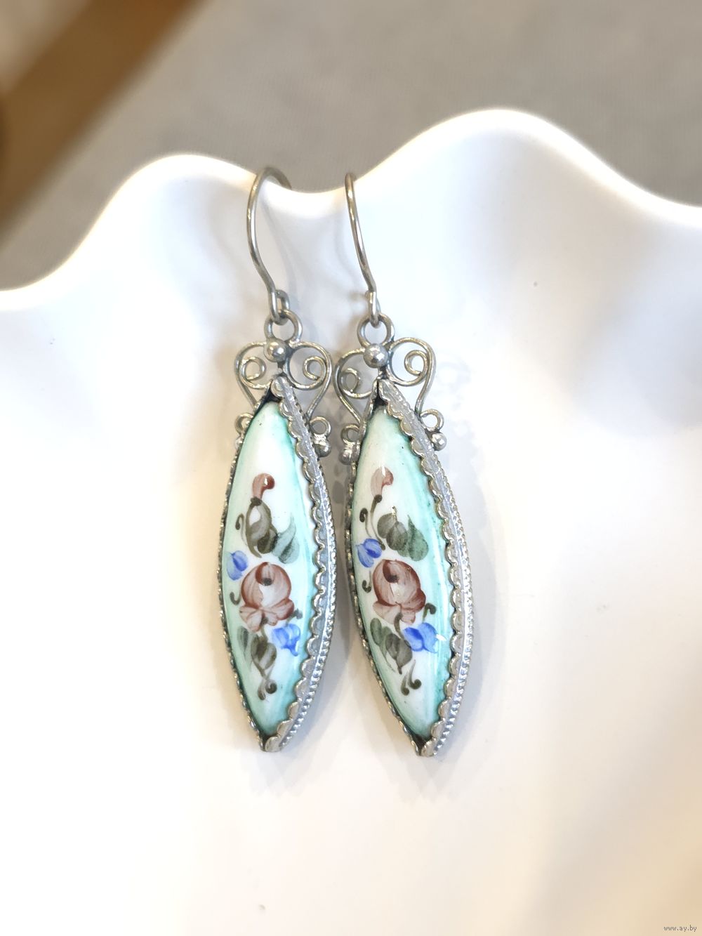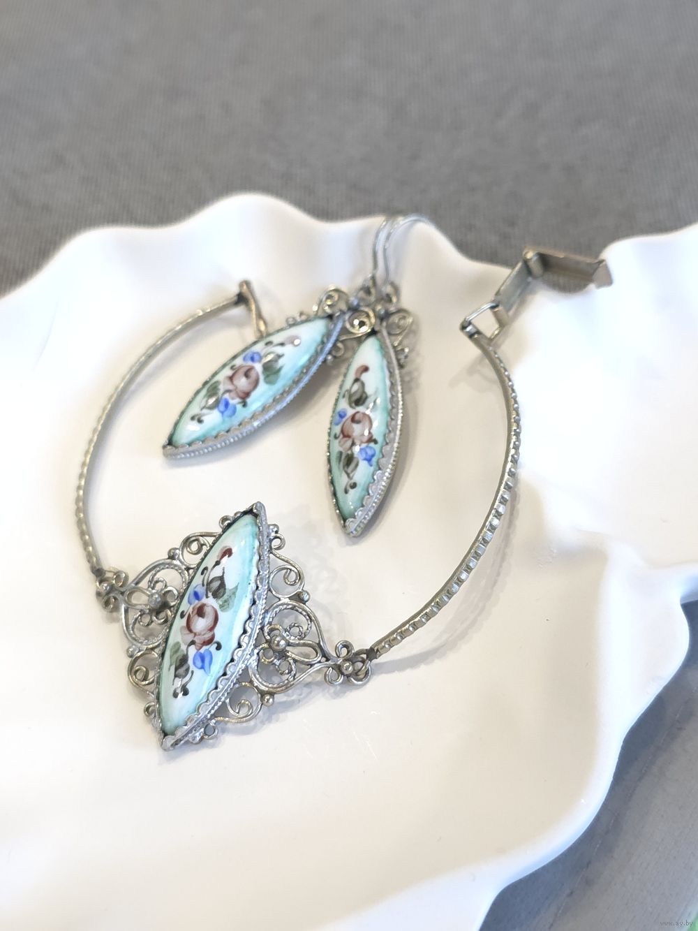 Серьги и браслет (длина 18 см), ростовская финифть.