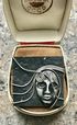 Эффектный комплект, состоящий из серёг и броши. Пластины из материала графитового цвета очень похожи на камень. Ручная работа. Высота серьги 3,5см., размер подвески 1,5х1,5см. Размер броши 3,2х3,2см. Состояние хорошее.