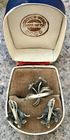 Винтажный комплект из мельхиора, лицевая сторона украшена эмалью и вставками из фианитов. Высота серьги 2см., размер кольца 17, состояние хорошее.