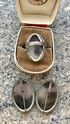 Крупный комплект с основой из нейзильбера и вставками из мохового агата. Высота серьги 3,7см., размер вставки 3х2см., высота каста в кольце 3см., размер вставки 2,4х1,5см., размер кольца 19. Состояние хорошее.