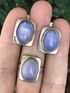 Комплект с основой из мельхиора и вставок из синт.лунного камня. Высота серьги 1,7см, размер кольца 17, размер вставок 1,4х1см. На одной серьге вокруг вставки присутствует незначительное потемнение металла (в глаза не бросается,учтено в цене).