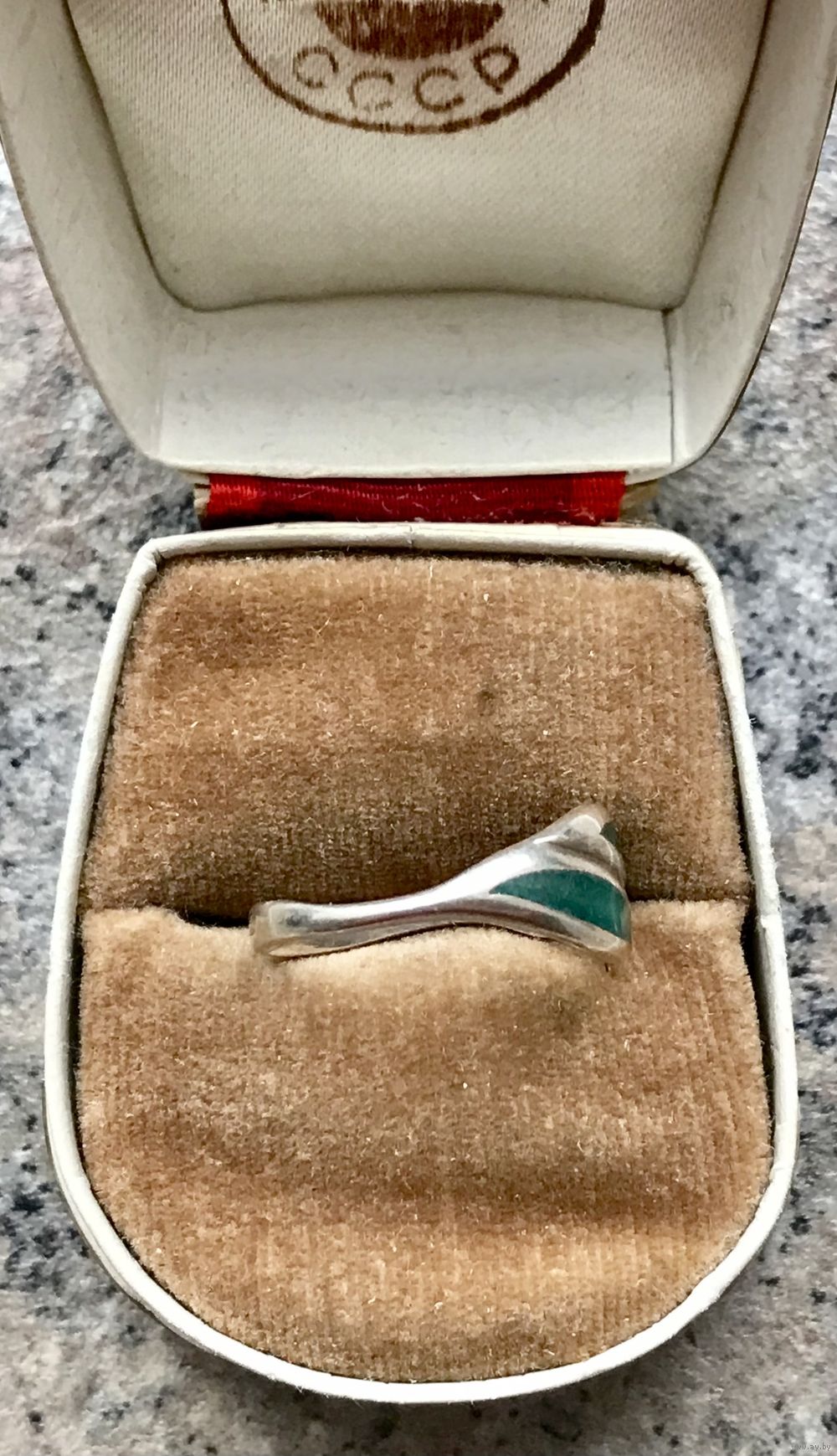 Комплект из серебра 925пр.(звезда), изготовлен в 1992г. на Таллинском ювелирном заводе (именник :2J). Лицевая сторона украшена эмалью. Высота серьги 3,4см, размер кольца 17. Состояние хорошее.
