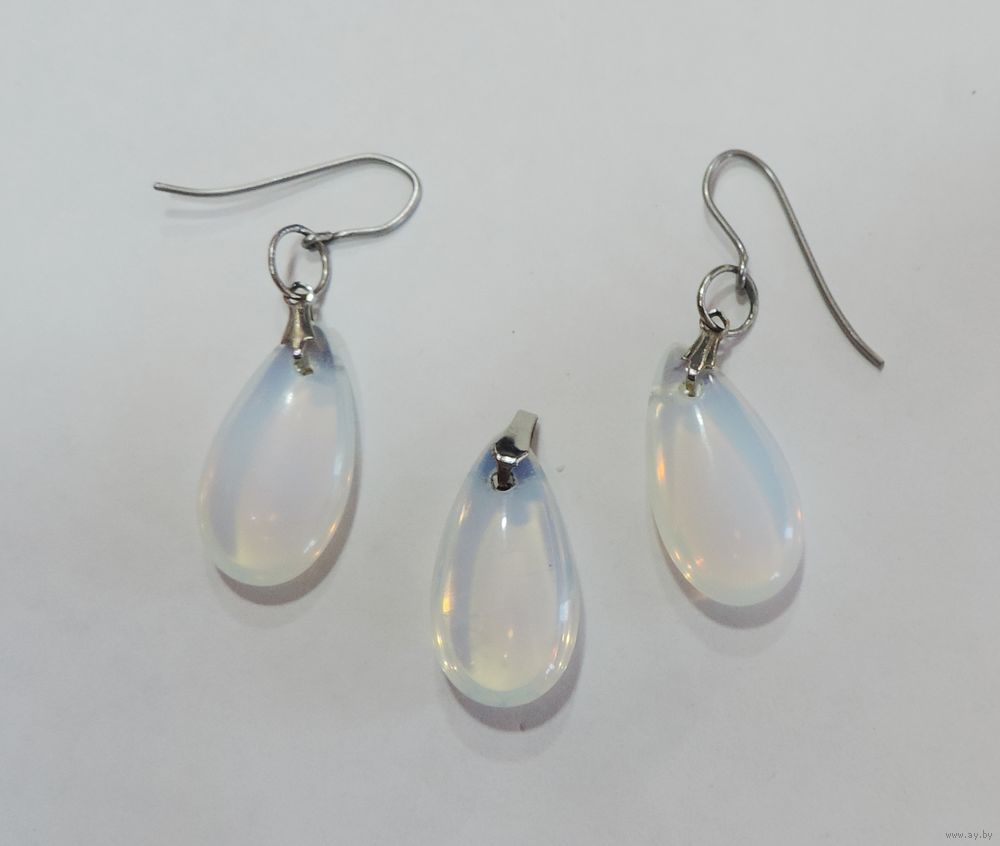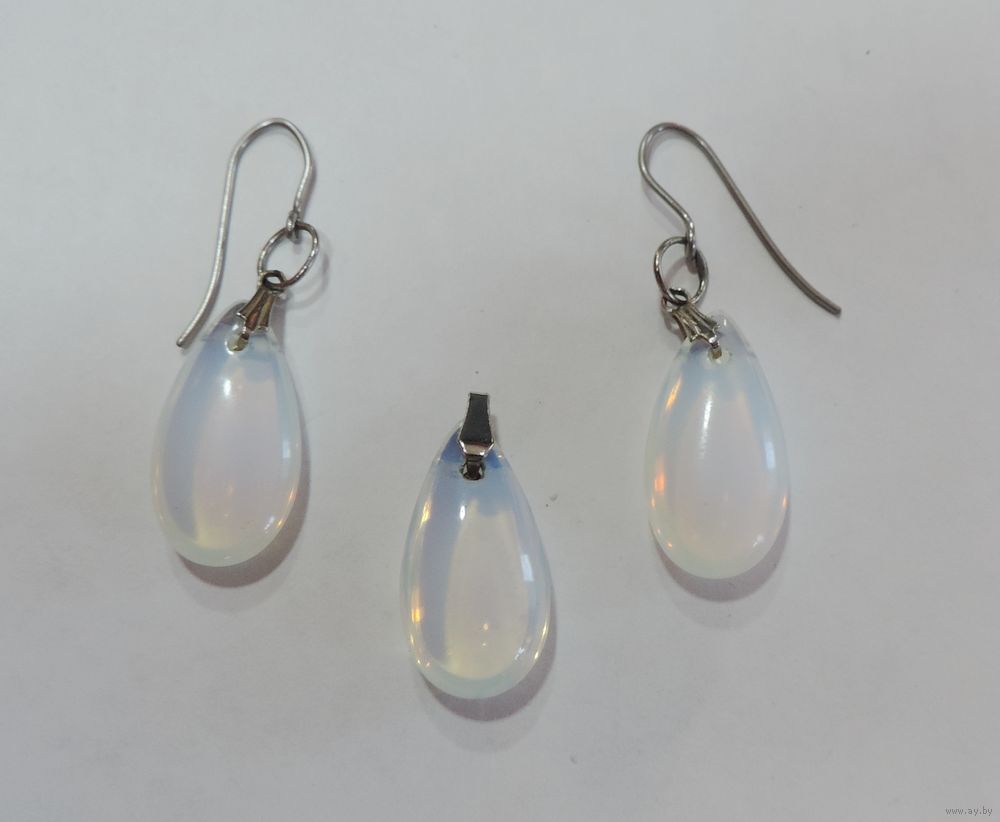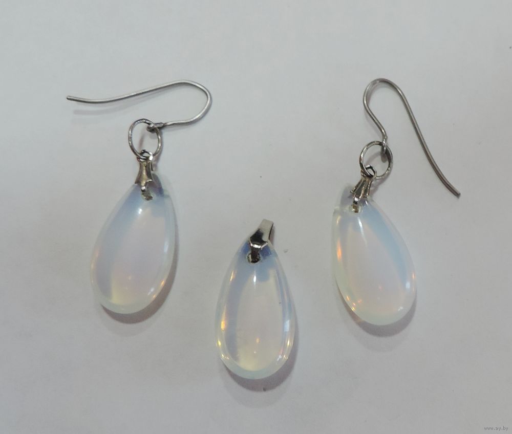 Серьги и кулон "Лунный камень" 70-80-е годы Европа. Размер камня 1.2-2.3 см.