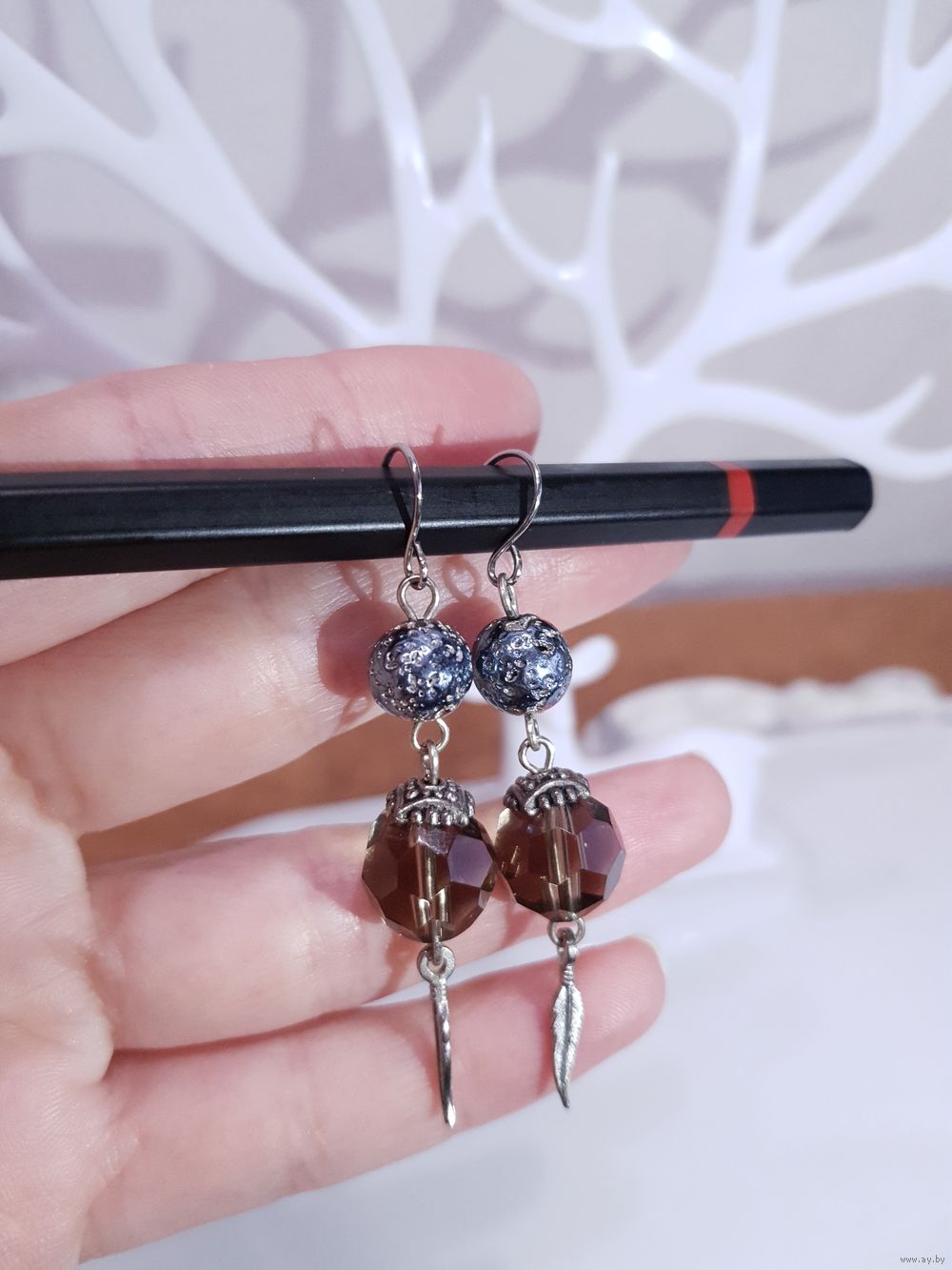 Серьги из камня лавы и чешского дымчатого стекла, сталь