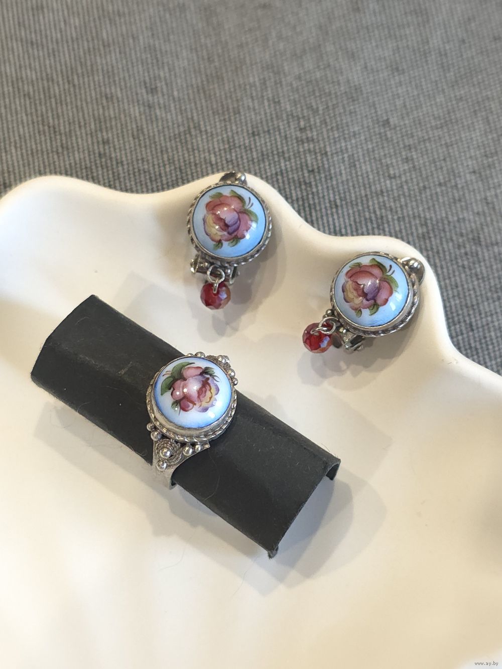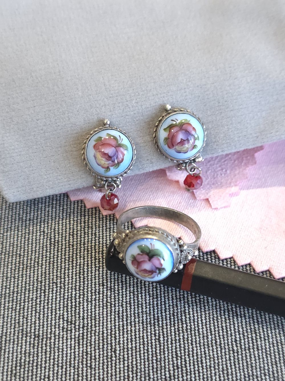 Серьги-клипсы кольцо р. 16,5, ростовская финифть.