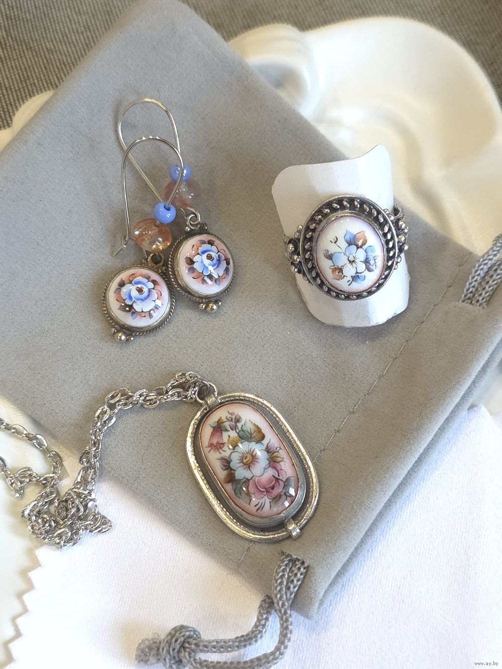 Серьги, кольцо р.19 и кулон, ростовская финифть.
