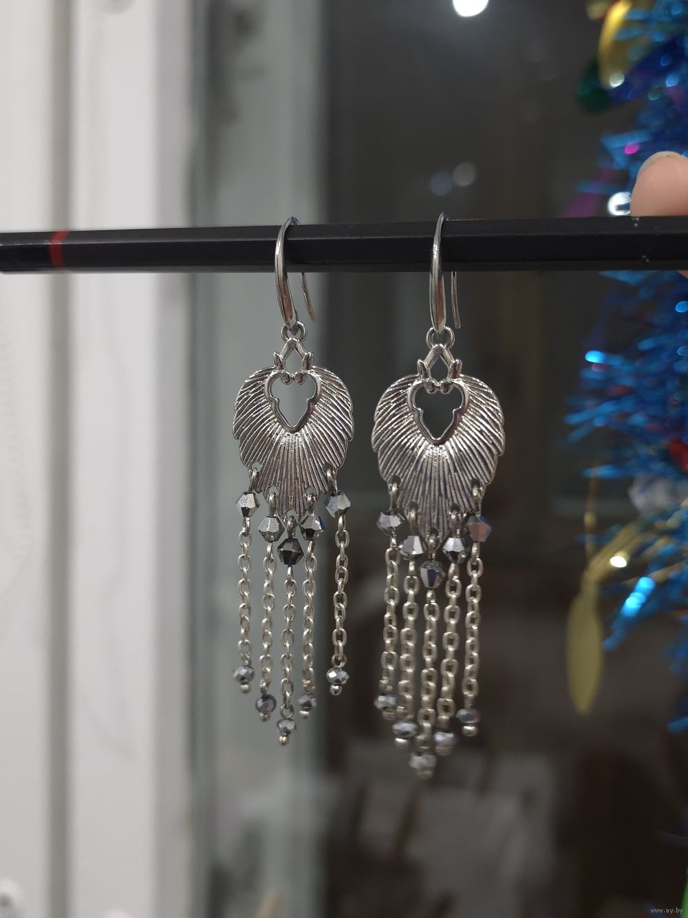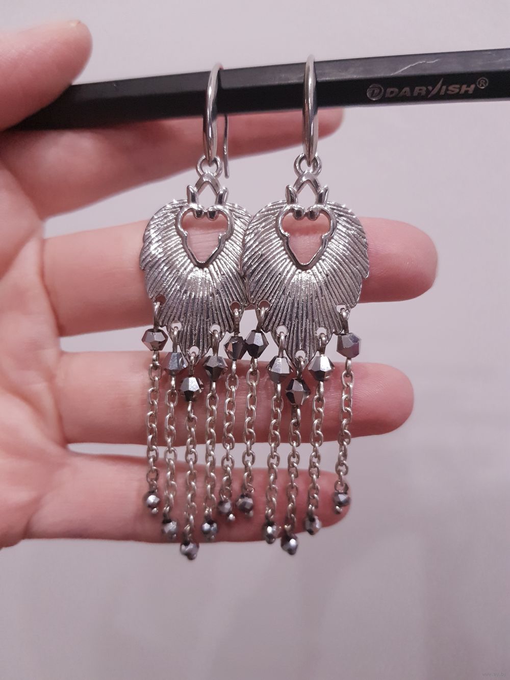 Серьги с кристаллами Сваровски, Чехия, длина 6 см