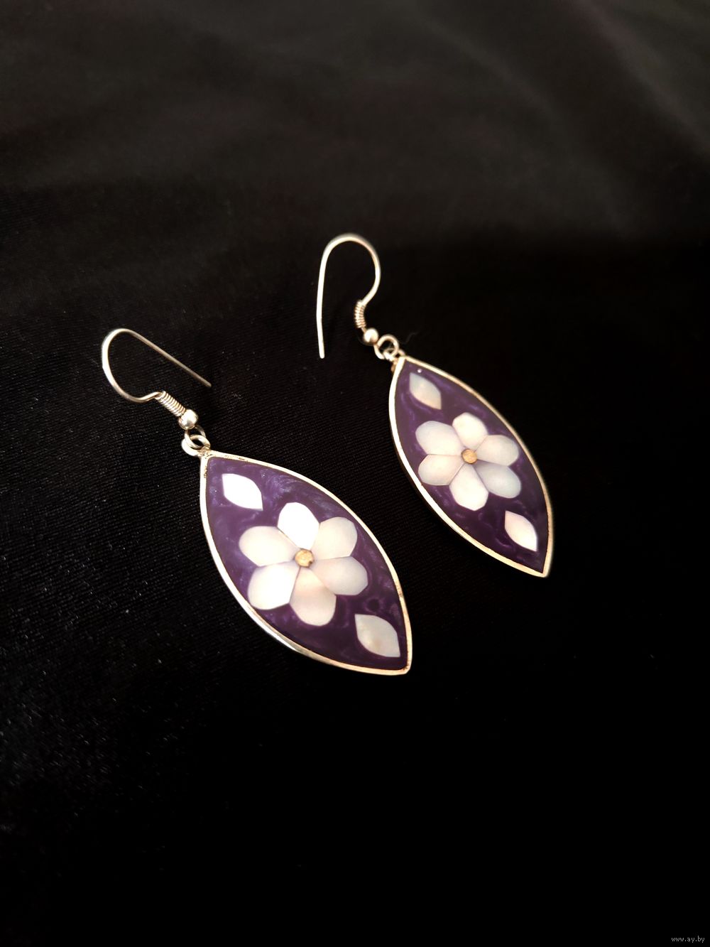 Винтажные серьги ручной работы из мексиканской альпаки с перламутровой инкрустацией.