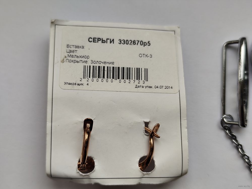 Серьги мельхиор в позолоте. Красная Пресня. Новые
