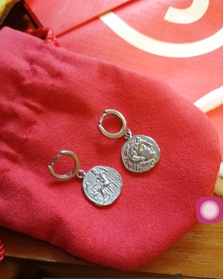 Серьги монетки с каждой стороны разный профиль, 925 проба с биркой.