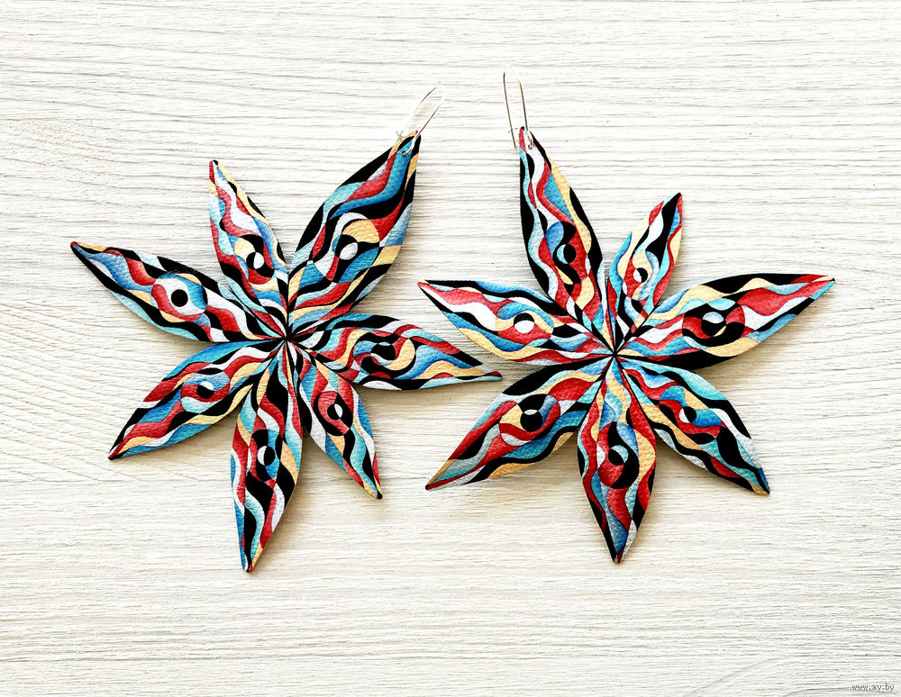 Холст, масло, лак. Швензы закрытые, 19мм, посеребренные. Серебряное покрытие 925° и 999°. Основа для серег - швензы из латуни с застежкой - крючком. Не содержат свинец и никель. (Поставщик США). Размер серьги – примерно 11х11 см. Без повтора! Без обмена!
