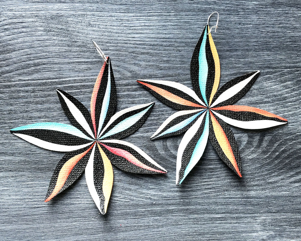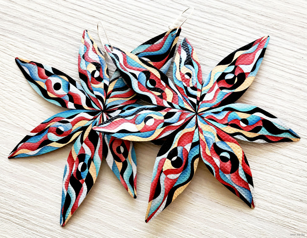 Холст, масло, лак. Швензы закрытые, 19мм, посеребренные. Серебряное покрытие 925° и 999°. Основа для серег - швензы из латуни с застежкой - крючком. Не содержат свинец и никель. (Поставщик США). Размер серьги – примерно 11х11 см. Без повтора! Без обмена!