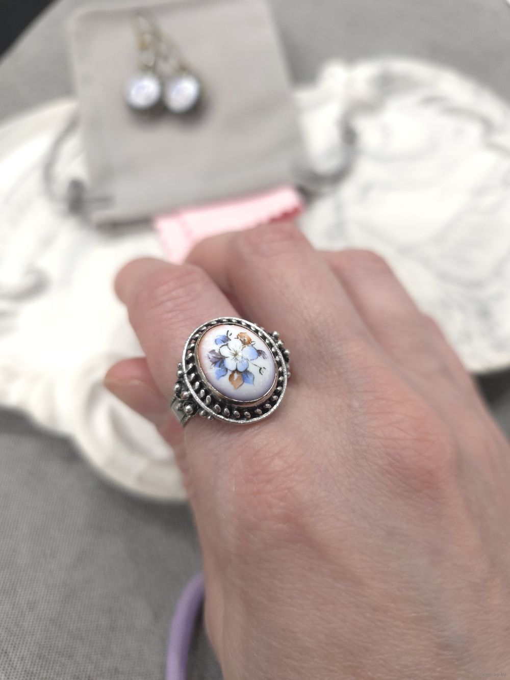 Серьги и кольцо р.19,5, ростовская финифть.