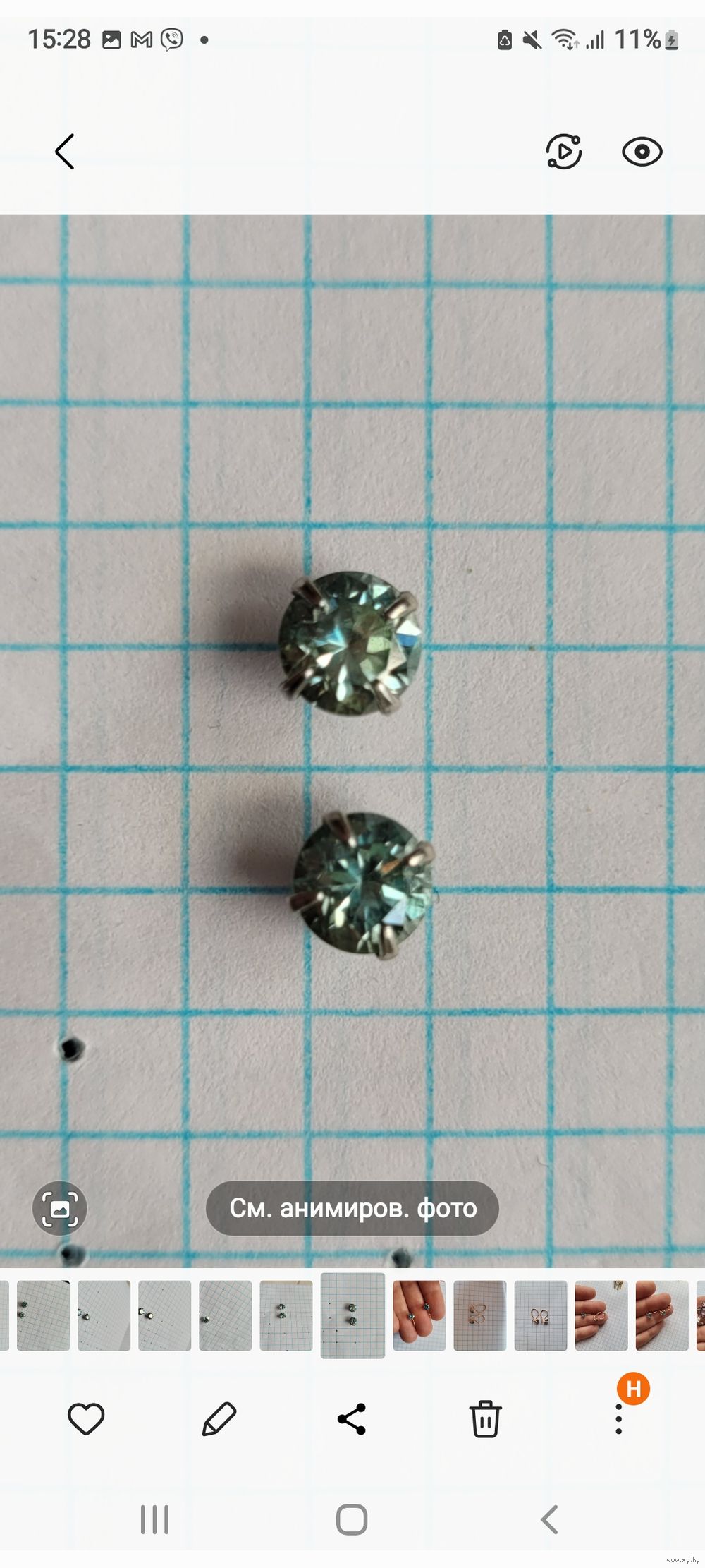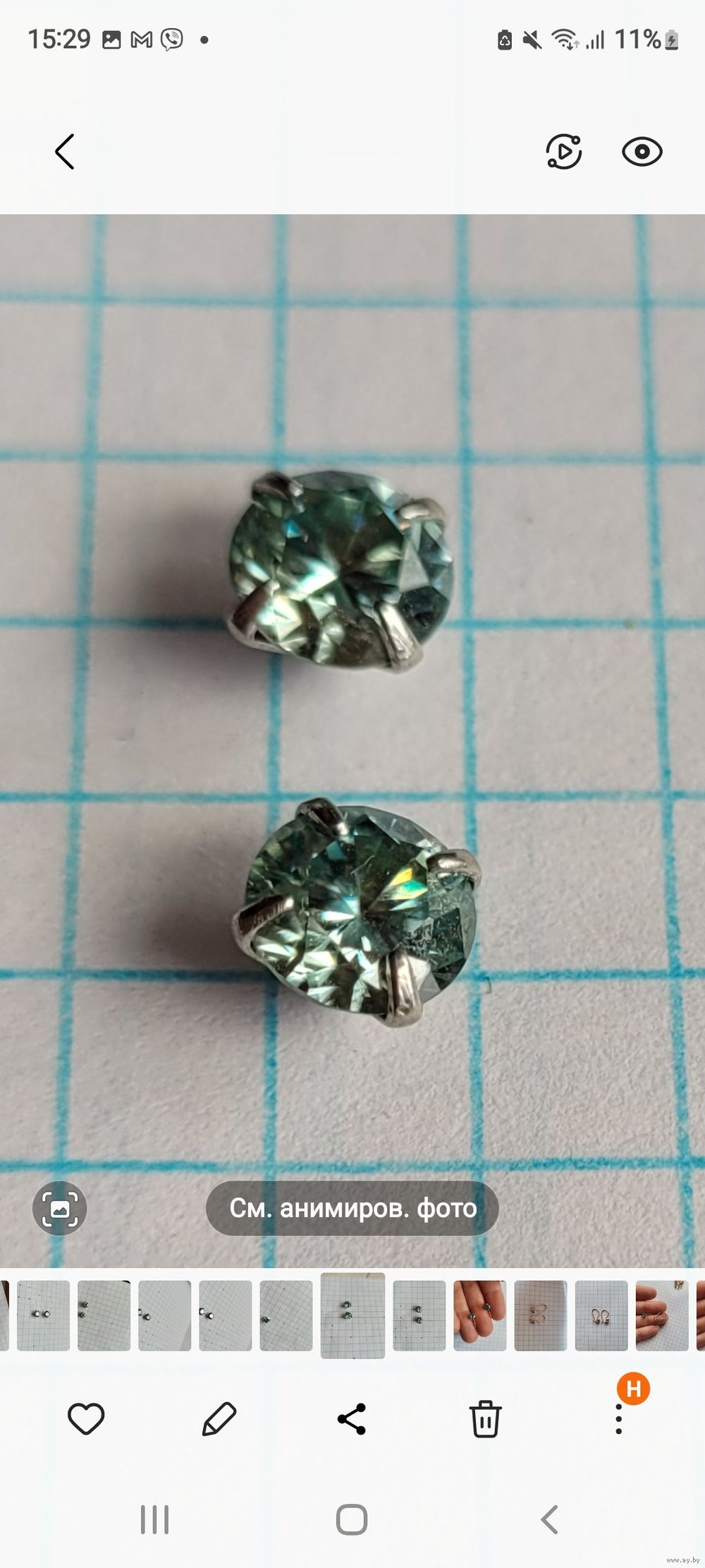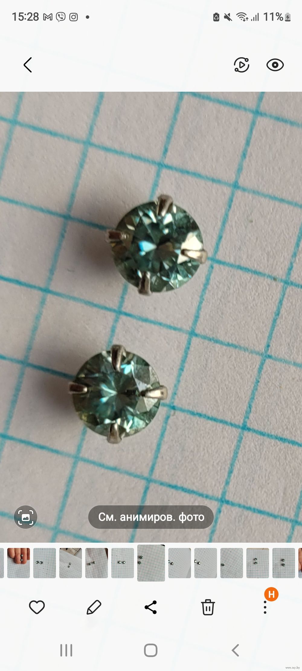 Серьги гвоздики. 925. Вставка муассанит голубого цвета.