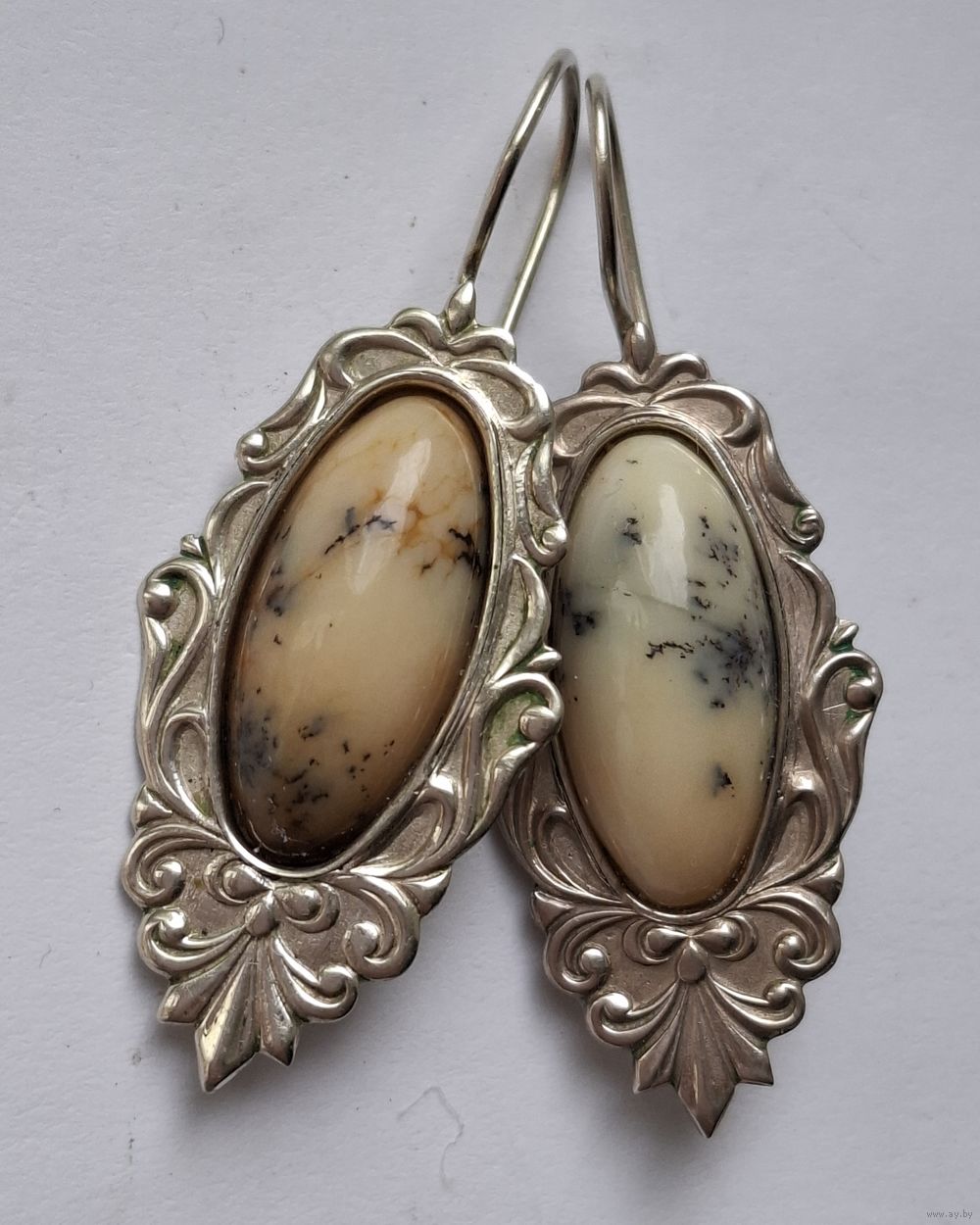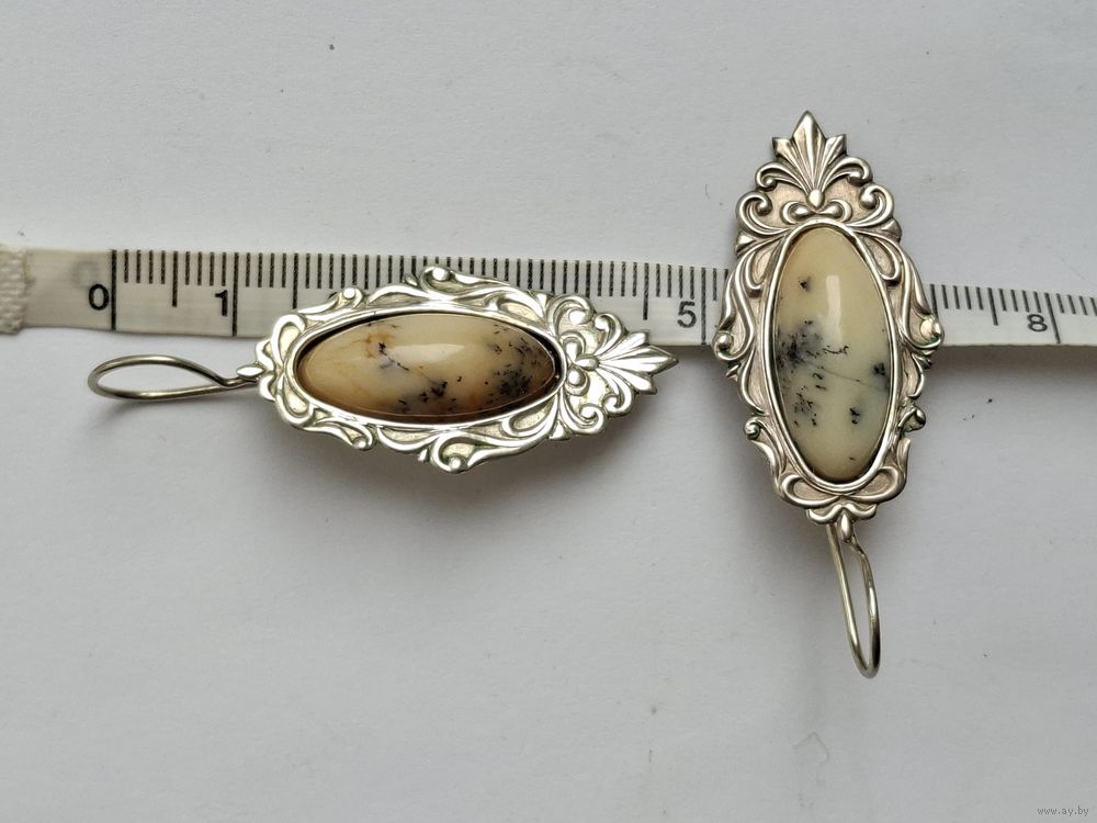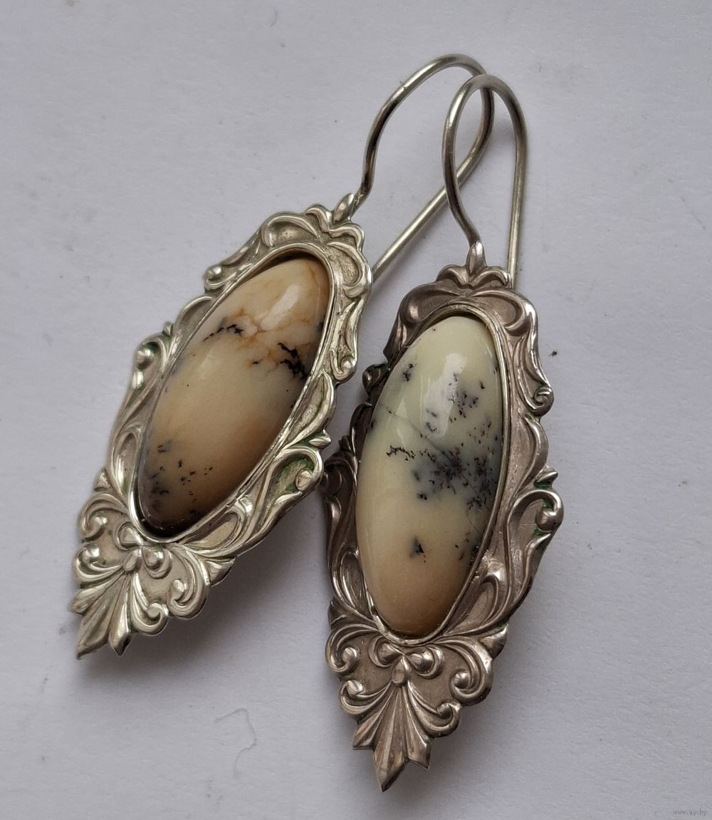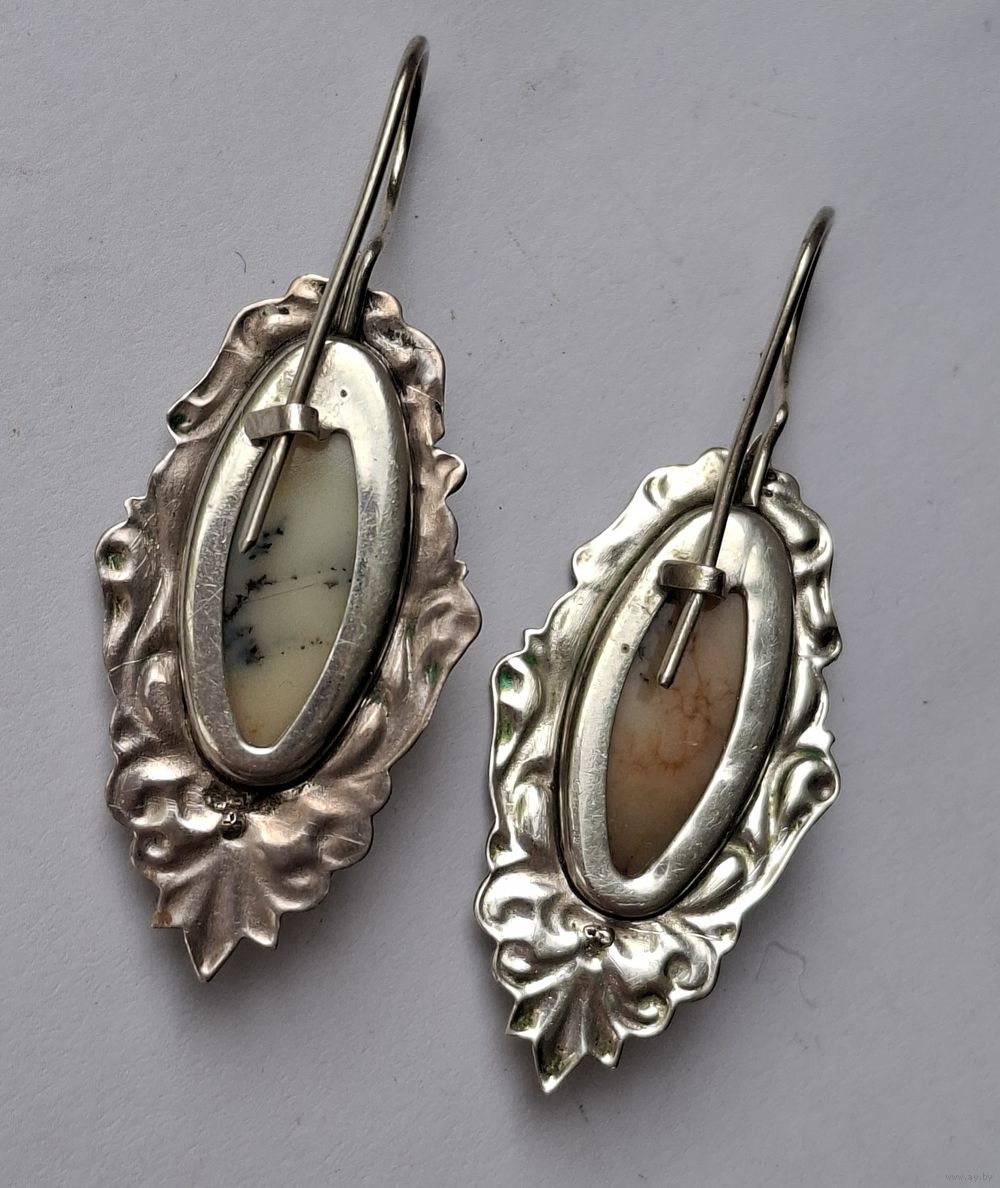 Серьги с натуральным камнем и узорами. Мельхиор. 50-е годы