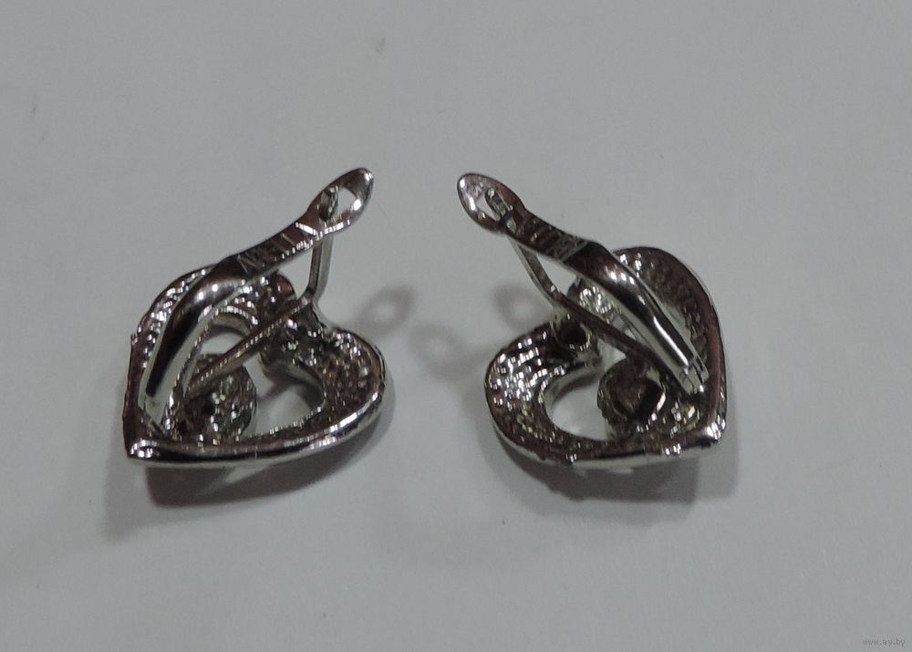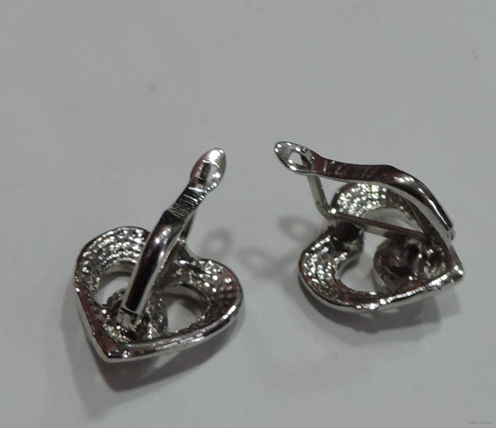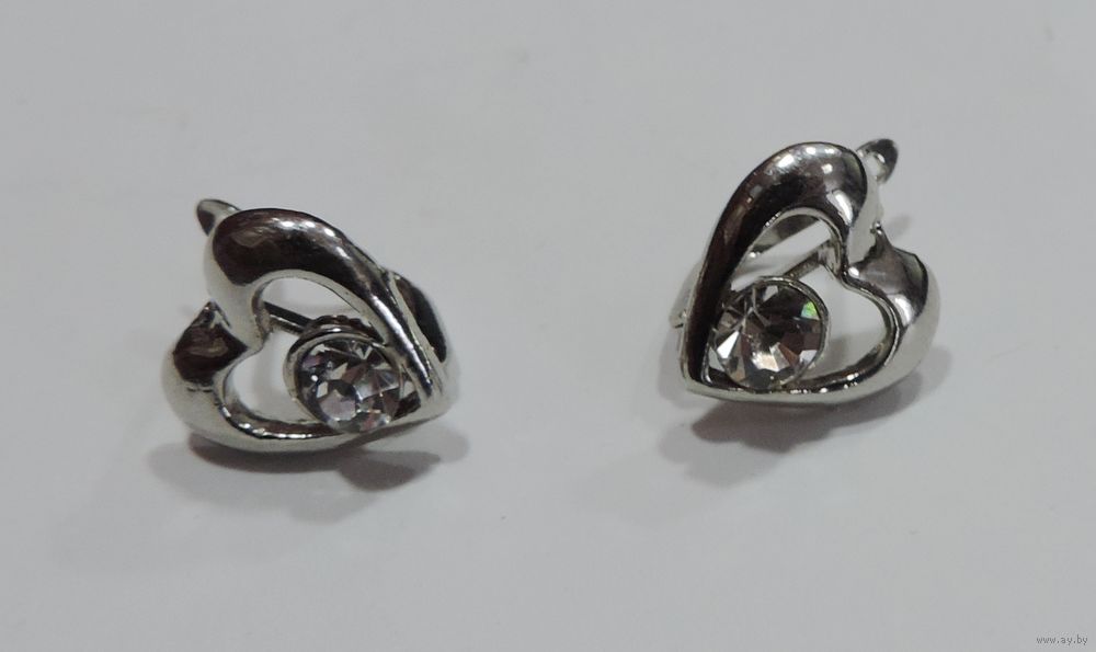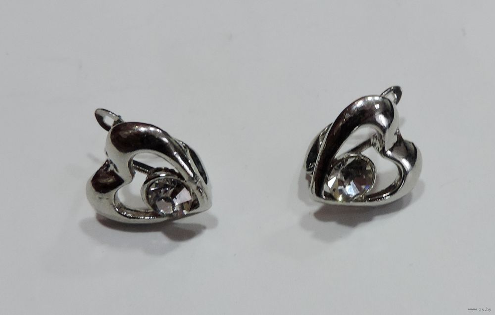 Серьги "Сердечко с кристаллом" 90-е годы Европа. Размер передней части 1.5-2 см. Мельхиор посеребренный.