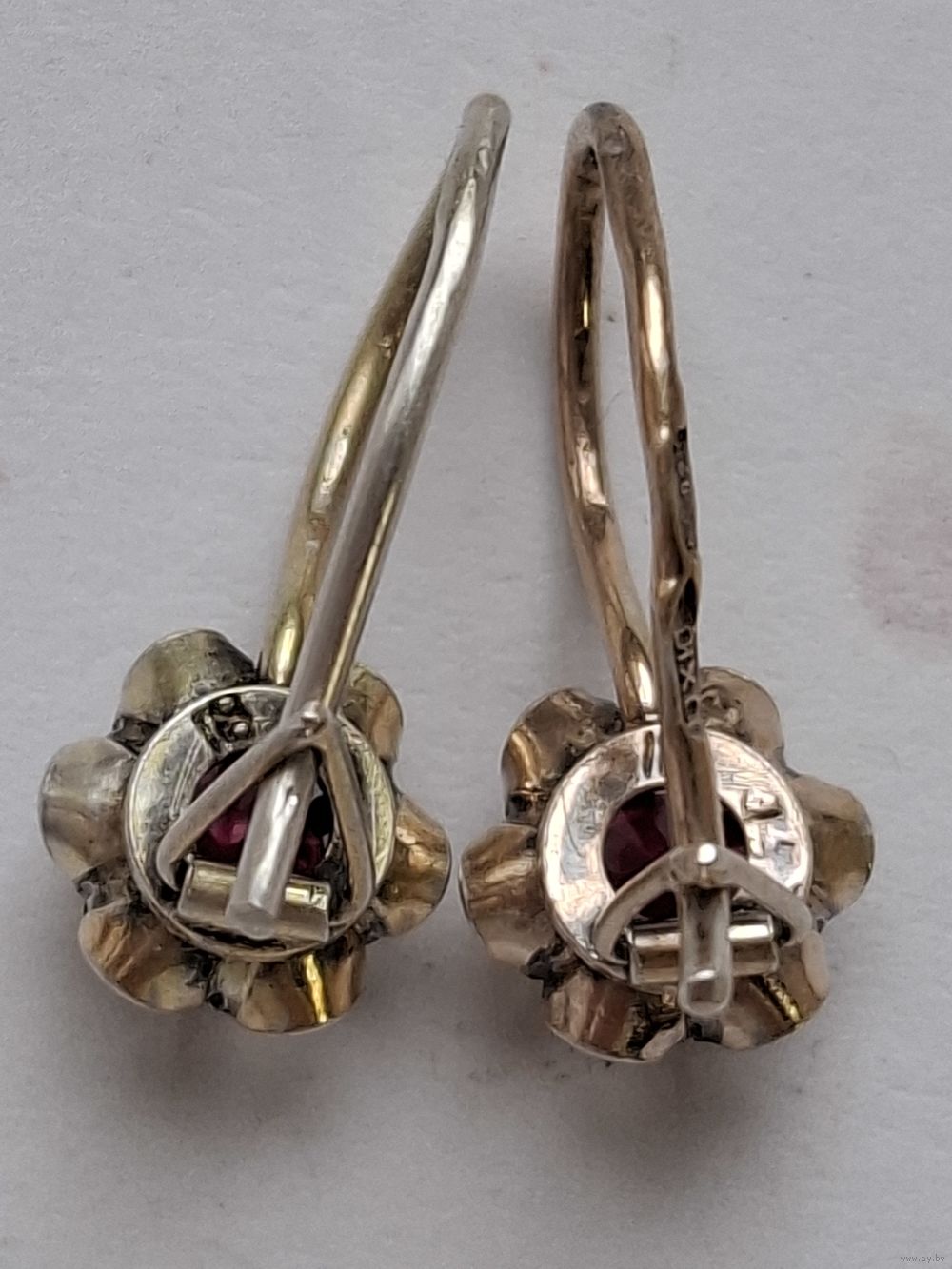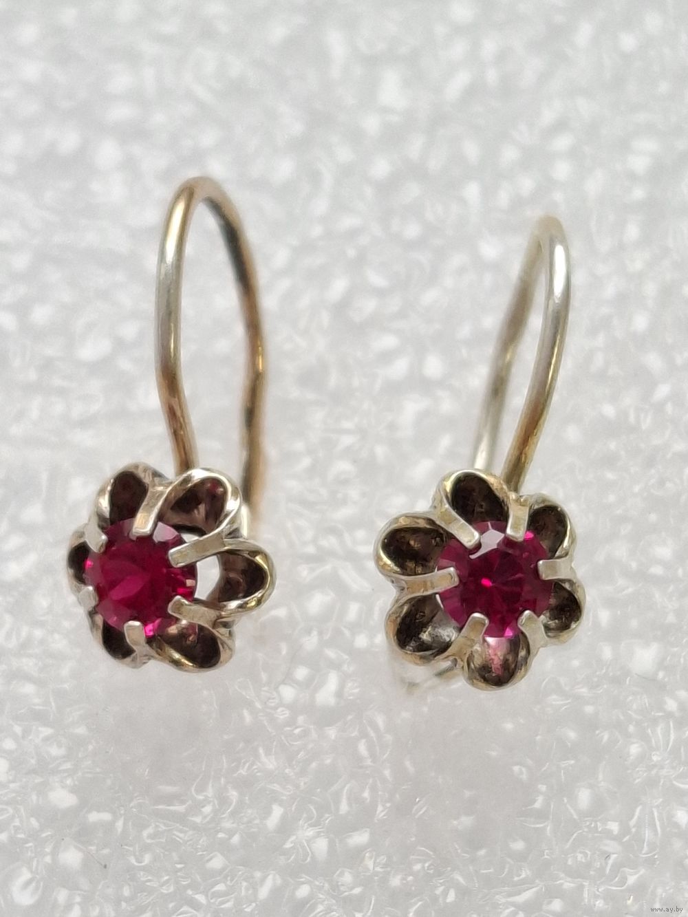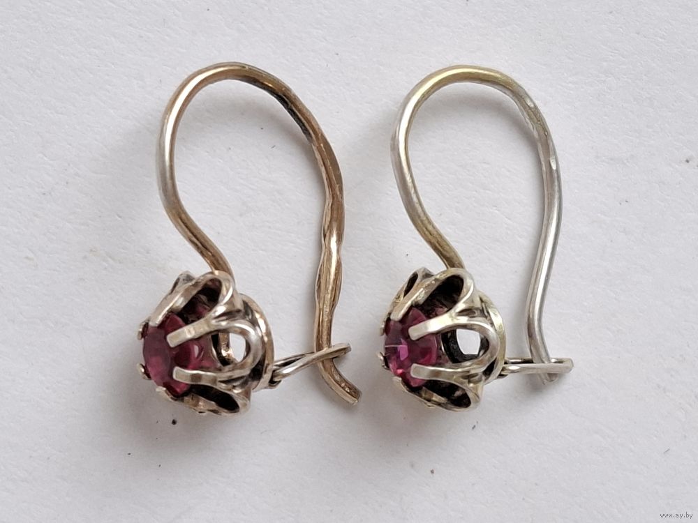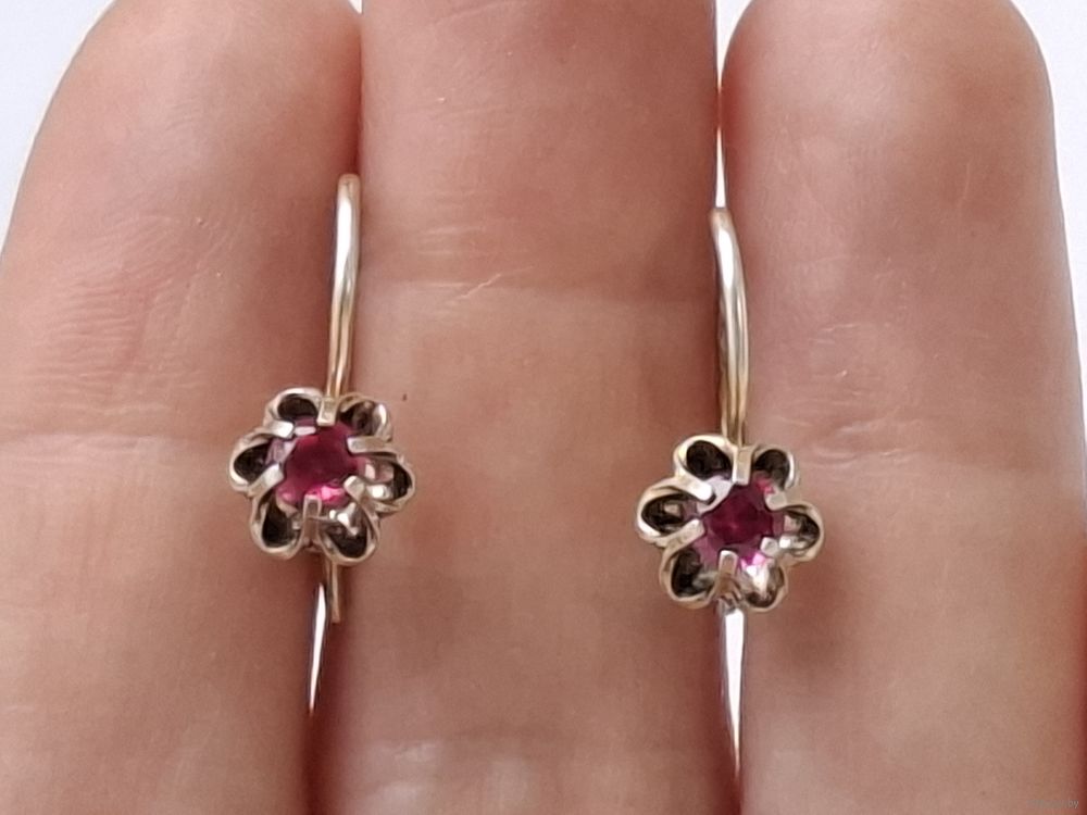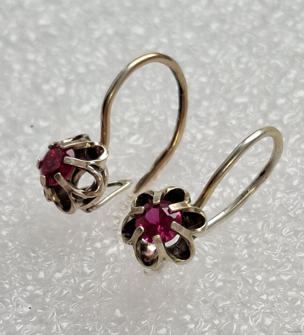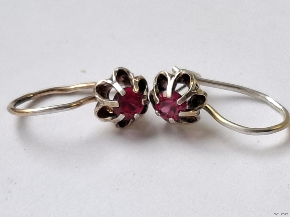 Серьги серебро. Кристаллы. Форма тюльпан. Позолота. Клеймо. Харьков.