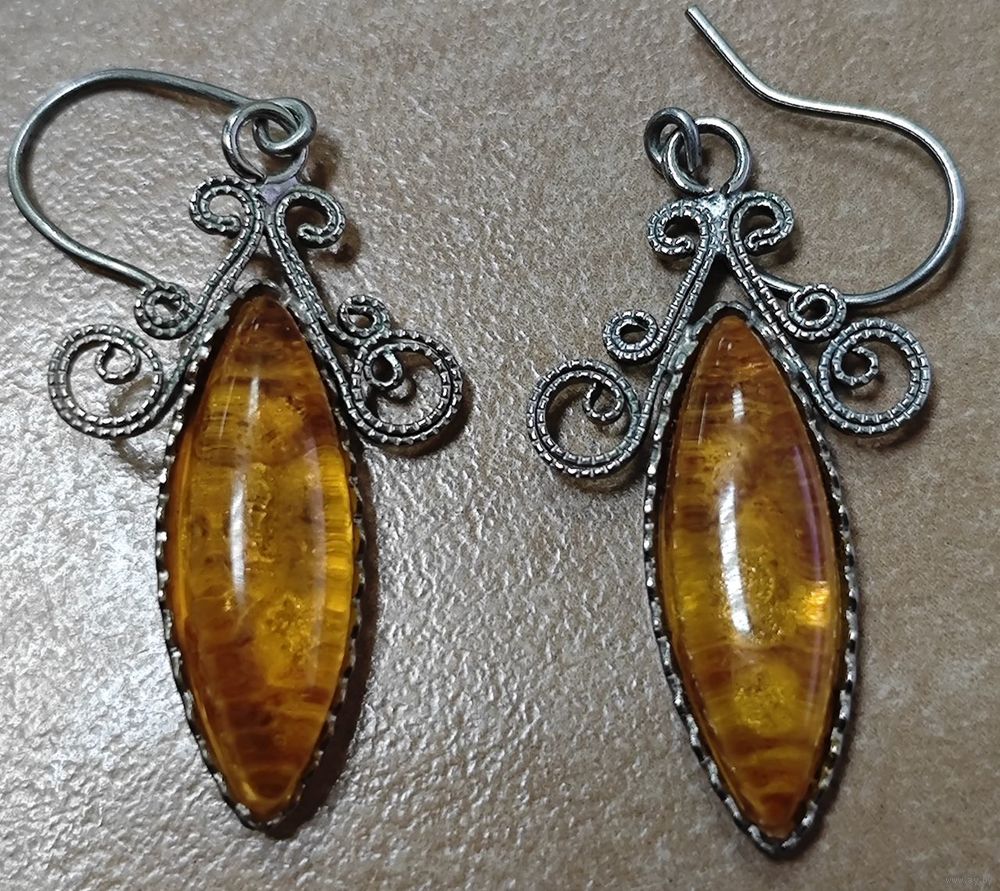 Серьги. СССР. Филигрань, янтарь