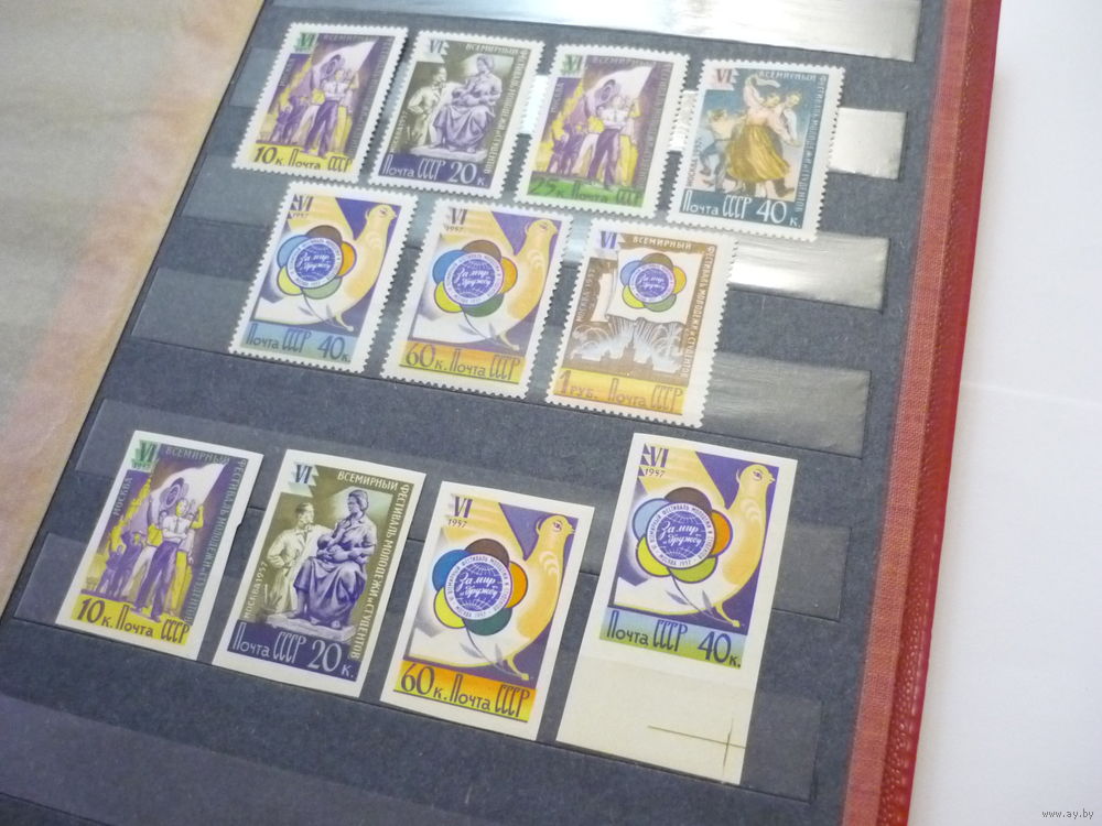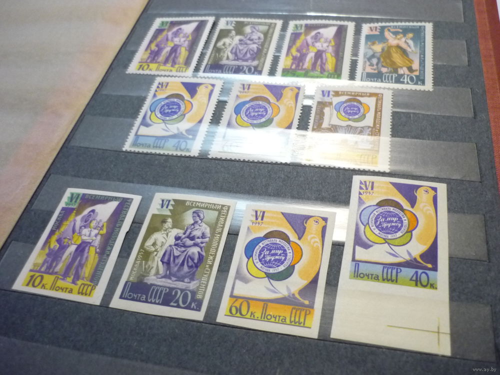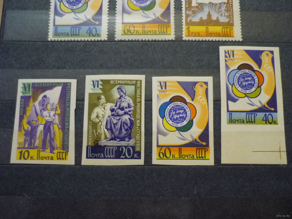 Для аукциона предлагаются серии марок СССР 1957 г.! Чистые (MNH **)! Тематика - Всемирный фестиваль молодежи в Москве. Серии с перфорацией и без перфорации (нечастая). Состояние. Материал из коллекции! Торги с 1 рубля без МЦ! Марки в отличном коллекционном состоянии ( MNH **), с клеем, есть с полем. (смотреть на фото). Гарантия продавца. Серия без перфорации - без одной последней марки (1 рубль -Эмблема). Все фото сделаны без фотовспышки при дневном свете..
