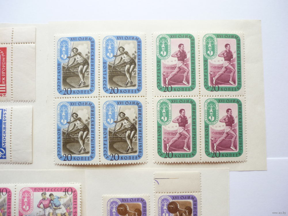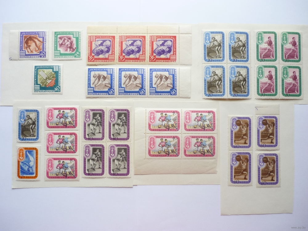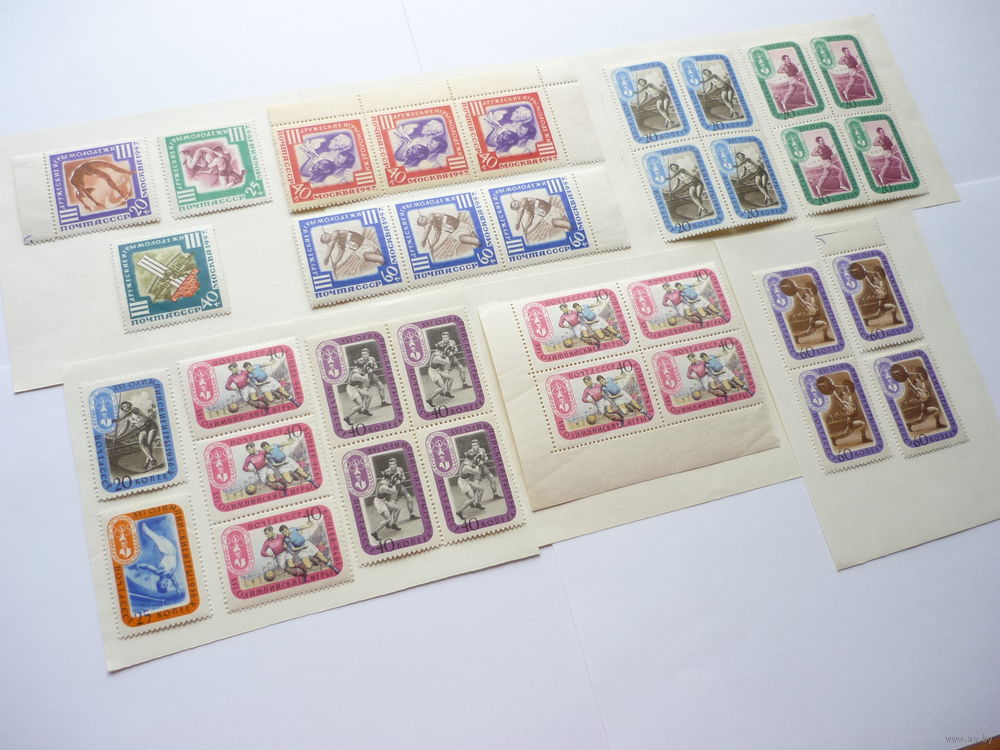 Для аукциона предлагаются полные серии марок СССР с квартблоками, дубль-сцепками и сцепками 1957г.! Качество! Чистые (MNH **)! По тематике спорт - Дружеские игры молодежи и Олимп. игры в Мельбурне. С угловыми и боковыми полями. 4 квартблока, 3 триптиха и дубль-сцепка. Состояние. Материал из коллекции! Нечастые и оригинальные в данном исполнении. Торги с 1 рубля без МЦ! Марки в отличном коллекционном состоянии ( MNH **), с клеем (смотреть на фото). Гарантия продавца. На оборотной стороне единичных марок могут быть легкие неровности. Все фото сделаны без фотовспышки при дневном свете.