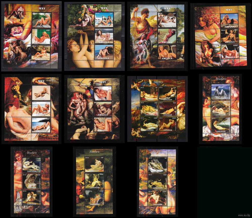 Серия блоков ДЕВУШКИ ИСКУССТВО КАРТИНЫ MNH