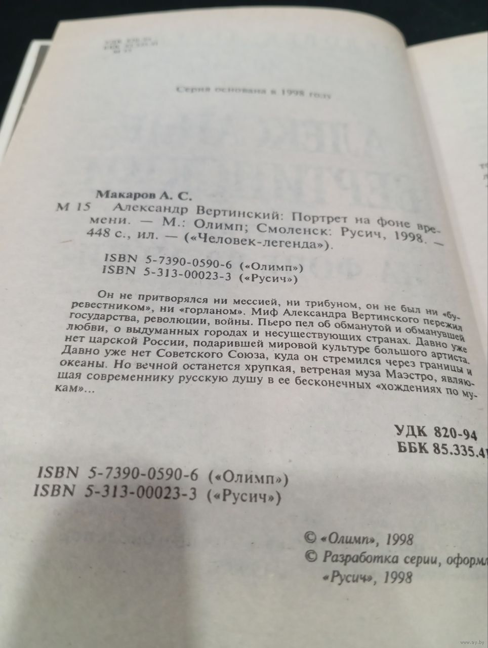 6. Анатолий Макаров "Александр Вертинский: Портрет на фоне времени" — Русич, 1998, 448 стр.