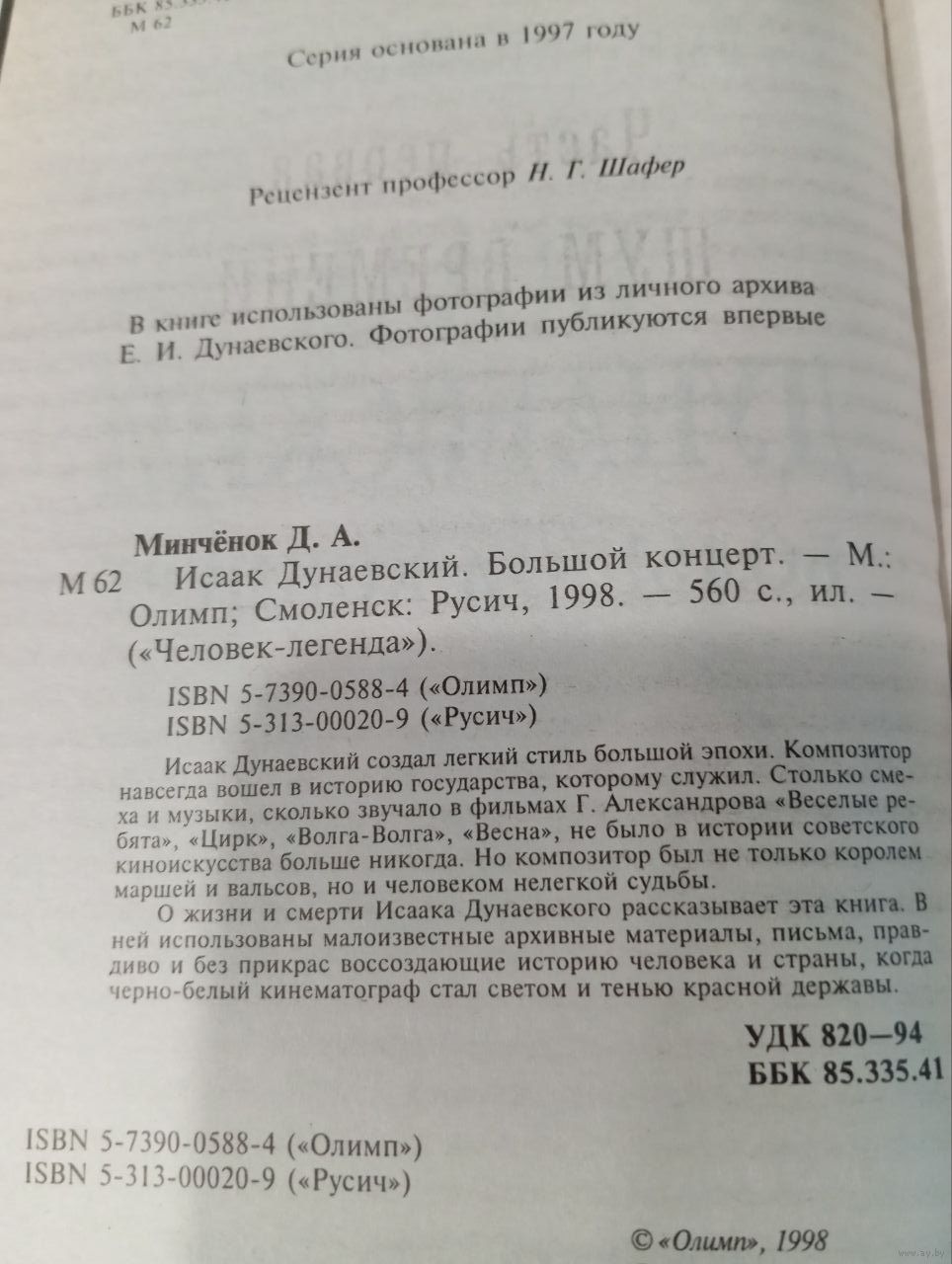 3. Дмитрий Минчёнок "Исаак Дунаевский. Большой концерт" — Русич, 1998, 560 стр.
