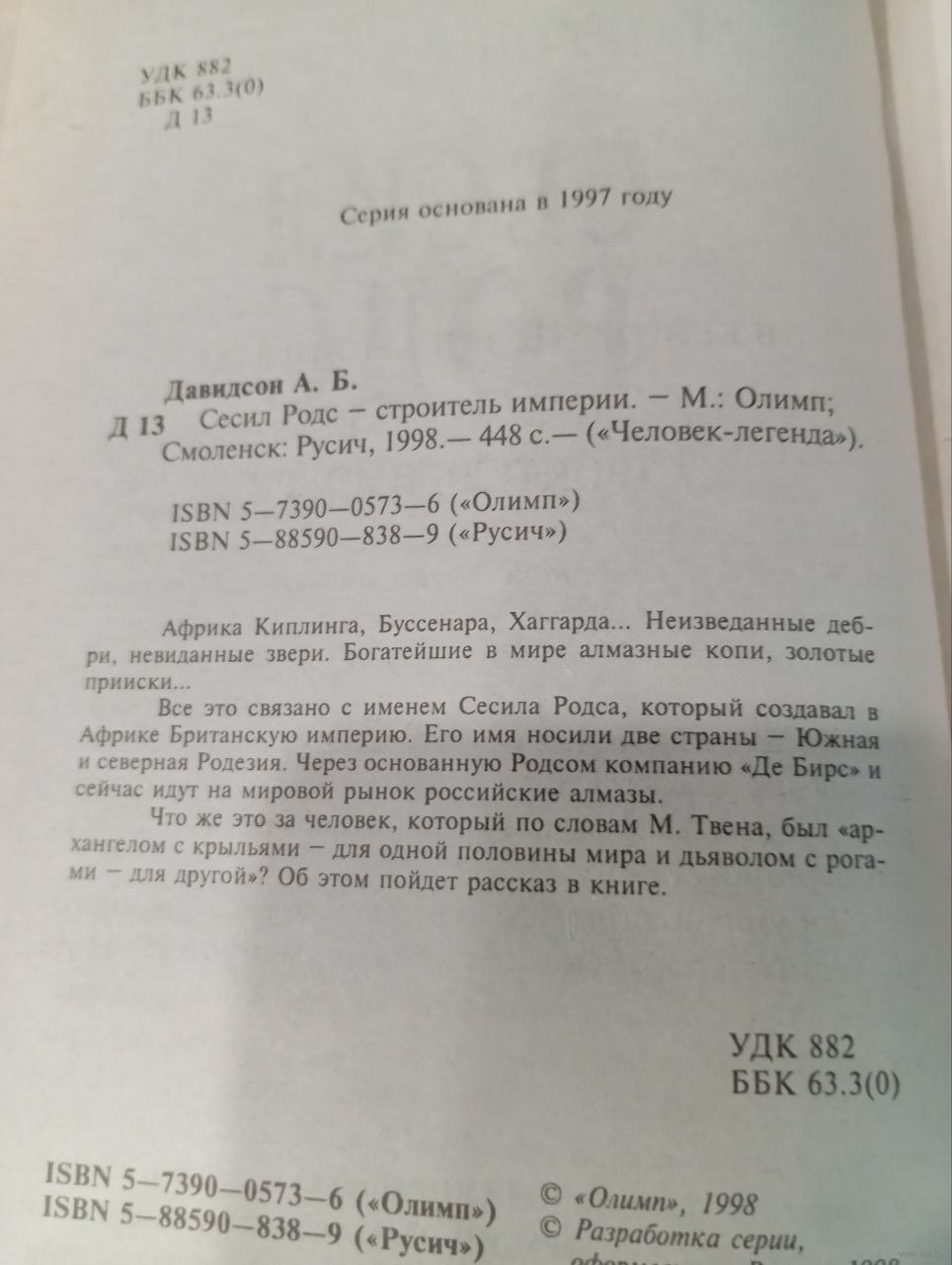 1. Аполлон Давидсон "Сесил Родс. Строитель империи" — Русич, 1998, 448 стр.