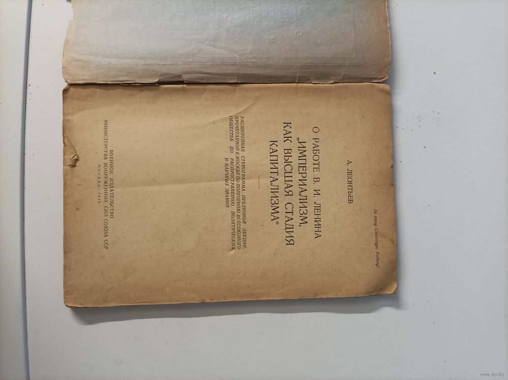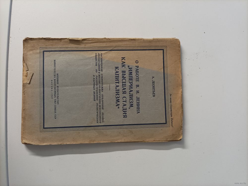 1) А. Леонтьев О работе В.И. Ленина "Империализм, как высшая стадия капитализма". Военное издательство министерства вооруженных сил СССР Москва 1949 год.