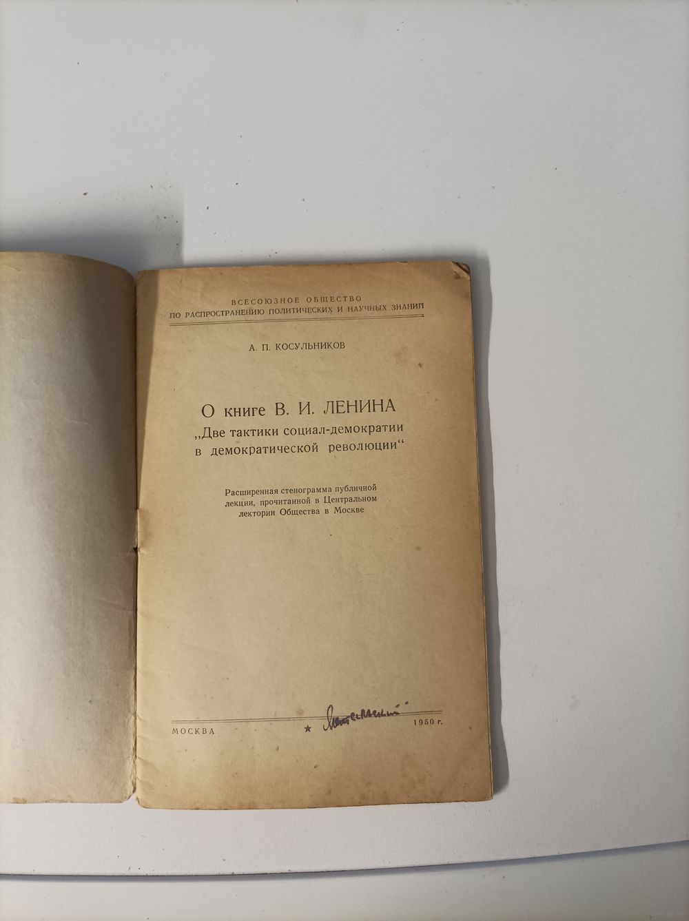 2) А.П. Косульников О книге В.И. Ленина "Две тактики социал-демократии в демократической революции". Издательство Правда Москва 1950 год.