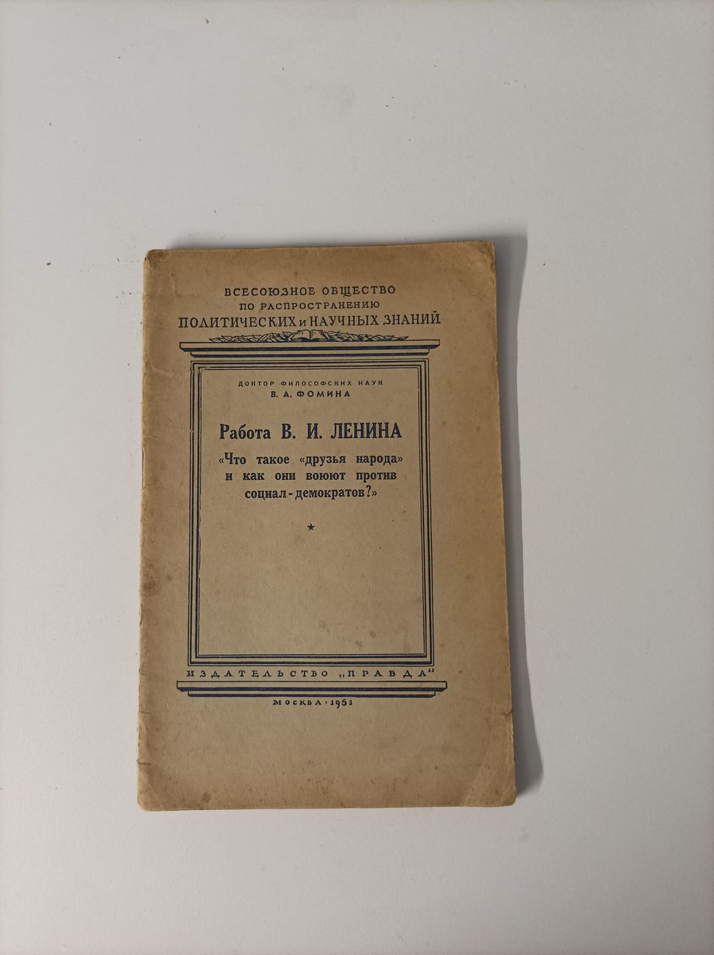 3) Доктор философских наук В.А. Фомина Работа В.И. Ленина"Что такое "друзья народа" и как они воюют против социал-демократии?" Издательство Правда Москва 1951 год.