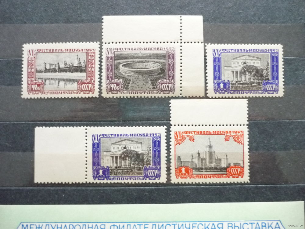 Для аукциона предлагаются полная серия марок и блок СССР 1957 г.! Качество! Чистые (MNH **)! Блок с разновидностью - Тип III (нечастый, КА - слитно в слове "Филателистическая", остальное раздельно). Серия марок - Фестиваль, Виды Москвы, Блок - Филателистическая выставка в Москве. Состояние. Материал из коллекции! Торги с 1 рубля без МЦ! Марки и блок в отличном коллекционном состоянии (MNH **), с клеем (смотреть на фото). Гарантия продавца. Есть марки с угловыми и боковыми полями. Одна марка к серии - парная (Большой театр). На оборотной стороне единичных марок могут быть легкие неровности. Все фото сделаны без фотовспышки при дневном свете.