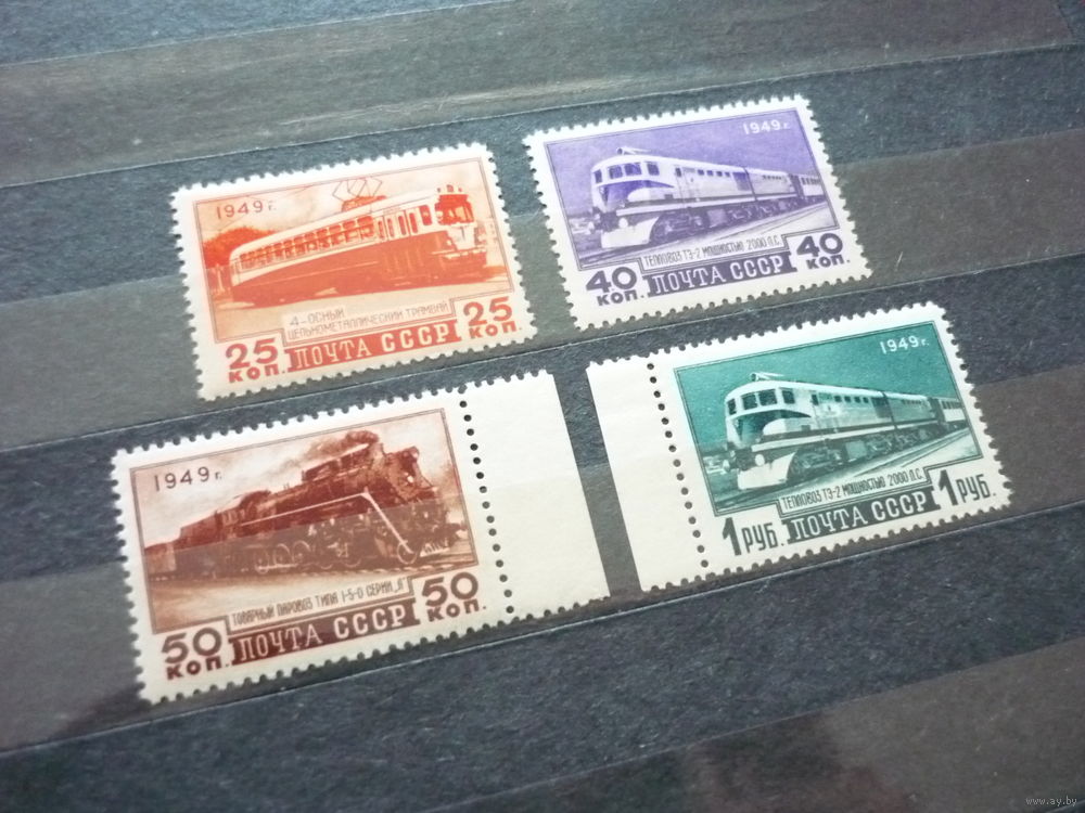 Серия марок периода СССР 1949г.! Качество. Состояние! Чистые (MNH **)! По тематике Железная дорога - Ж/д транспорт. #КВ растр на всех марках, Тип I, 1949. Есть с полями. На 2-х выборочных марках растр показан вблизи(смотреть на фото). Марки в идеальном коллекционном состоянии (MNH **), чистые с клеем (смотреть на фото). Гарантия продавца! Материал из коллекции! Смотрите другие мои лоты.