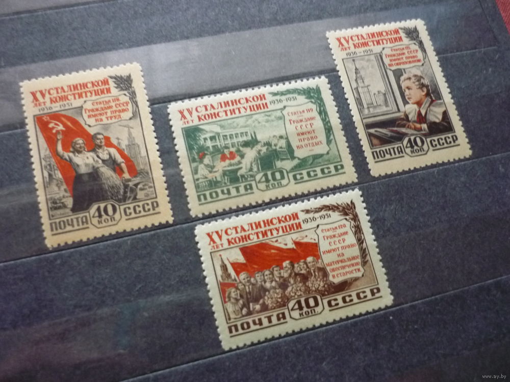 Для аукциона предлагается полная серия марок СССР 1952г.! Качество! Чистые (MNH **)! По тематике - 15 лет Конституции СССР. Состояние. Нечастая серия в данном исполнении. Материал из коллекции! Торги с 1 рубля без МЦ! Марки в отличном коллекционном состоянии ( MNH **), с клеем (смотреть на фото). Гарантия продавца. На оборотной стороне первой марки есть белые точки на клеевом покрытии(показано на фото). Все фото сделаны без фотовспышки при дневном свете.